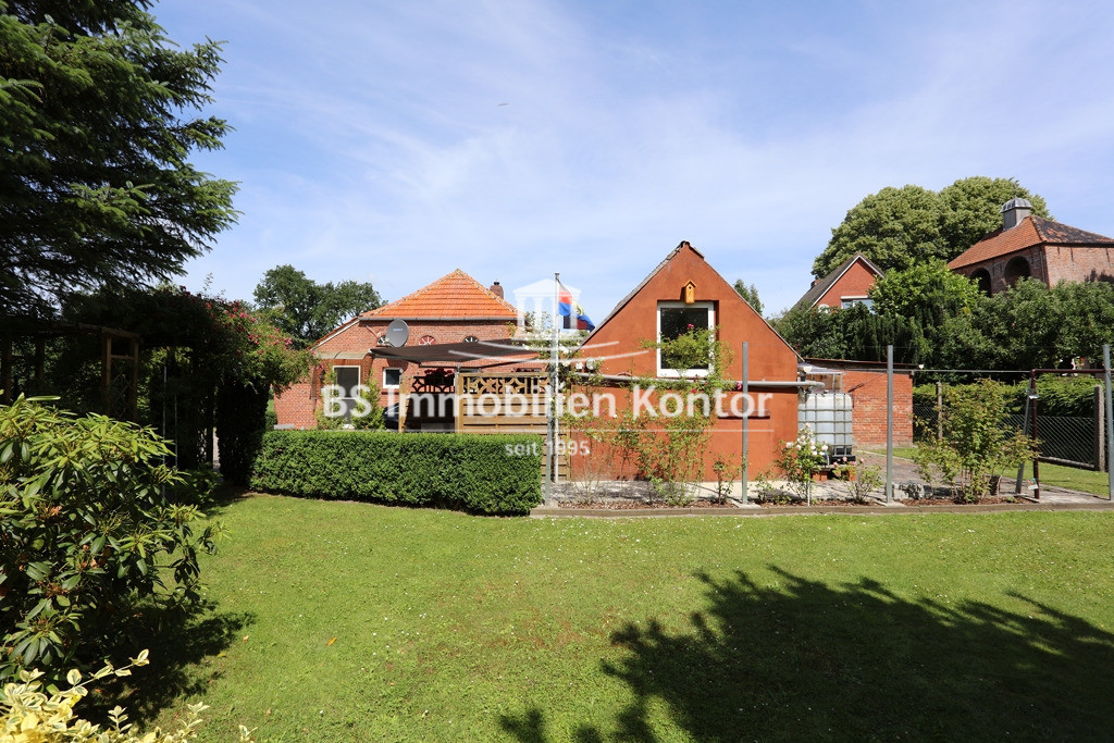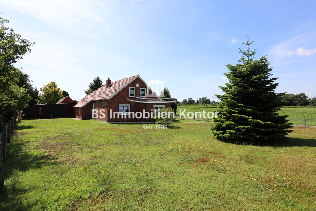 Dieses gepflegte Landarbeiterhaus liegt in einer idyllischen Wohnlage von Engerhafe und wurde ca. 1900 (genaues BJ unbekannt) in Massivbauweise mit einem Satteldach erstellt. 2002 erfolgte eine Sanierung der Immobilie. Im Laufe der weiteren Jahre wurden weitere Renovierungsarbeiten durchgeführt. Das Grundstück bemisst ca. 1.366 qm und verfügt über eine Gartenanlage mit überdachter Terrasse und freien Blick. Beheizt wird das Objekt durch eine Gas-Zentral-Heizung. Die weißen, neuwertigen Kunststofffenster sind mit einer Isolierverglasung und Jalousien