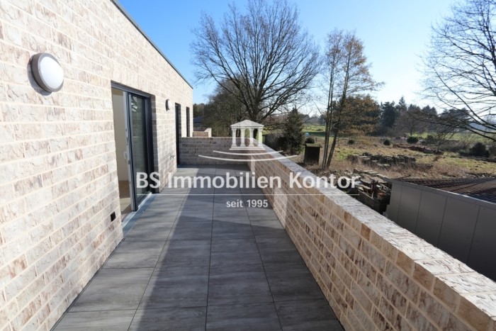 Diese exklusive, barrierefreie und seniorengerechte Neubau Penthouse-Wohnung wurde 2019 in konventioneller Massivbauweiser in einer zentralen Wohnlage von Völlenerkönigsfehn erstellt. Das moderne Mehrfamilienhaus besteht aus insgesamt aus 6 komfortablen Wohneinheiten und überzeugt durch ein gelungenes Raumkonzept. Jede Wohneinheit verfügt über einen Carport inkl. Geräteraum. Die Wohnung bemisst ca. 84 qm und zeichnet sich durch zahlreiche, Extras aus (vgl. Auflistung). Die Wohneinheiten wurden in hochwertiger Bauweise mit bestem Schallschutz und optimaler Wärmedämmung errichtet. Helle, lichtdurchflutete Räume mit großen, bodentiefen Fenstern verleihen den Wohnräumen einen besonderen Flair. Für maximalen Komfort sorgt die moderne Fußbodenheizung mit Raumthermostaten in alle Räumen. Hochwertige Sanitärausstattung sowie einer ebenerdig gefliesten Dusche runden das Bild dieser Wohnung ab.