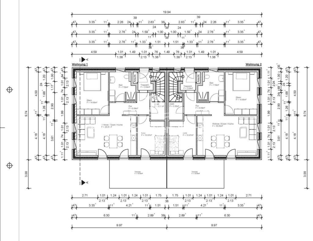 -Sep. Versorgungsanschlüsse für jede Wohneinheit