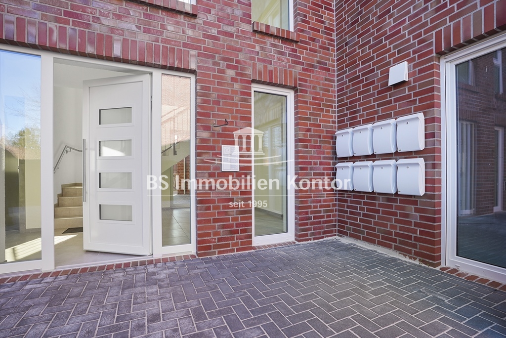 Leben und Wohnen im Herzen Papenburg. In einer zentralen Wohnlage präsentiert sich diese Eigentumswohnung mit traumhaftem Blick. Das Wohn-/Geschäftshaus wurde 2024/25 mit insgesamt 13 Wohneinheiten und 2 Gewerbeeinheiten fertiggestellt. Zur Wohnung Nr. 10 gehört ein PKW-Einstellplatz im rückwärtigen Bereich. Vom einladenden Eingangsbereich eröffnet sich Ihnen der offen gestaltete und lichtdurchflutete Wohn- und Essbereich. Die verglaste, Süd-West-Terrasse lädt Sie zum Entspannen und Relaxen ein. Die weißen Kunststofffenster sind dreifachverglast und mit elektrischen Jalousien ausgestattet. Beheizt wird die Immobilie durch eine Luft-/Wasserwärmepumpe. Sämtliche Räume sind mit einer Fußbodenheizung ausgestattet. Eine ideale Single-Wohnung oder Kapitalanlage!