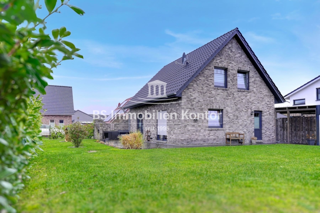 Wohnhighlight in Jheringsfehn! Dieses Immobilienangebot präsentiert sich in einer ruhigen, zentralen Wohnlage und bieten Ihnen neuwertigen Wohnkomfort. Das top gepflegte Einfamilienhaus wurde 2017 in konventioneller Massivbauweise unter Verwendung hochwertiger Baumaterialien mit einem Satteldach erstellt. Vom einladenden Eingangsbereich eröffnet sich Ihnen der großzügige, offen gestaltete und lichtdurchflutete Wohn- und Essbereich. Die hochwertige Einbauküche mit Markengeräten lädt Sie zu ausgedehnten Kochabenden ein. Über eine formschöne, Holztreppe gelangen Sie ins Obergeschoss. Das pflegeleichte Eigentumsgrundstück bemisst ca. 666qm und ist pflegeleicht angelegt. Die weißen Kunststofffenster sind Dreifachverglast und mit Jalousien ausgestattet. Beheizt wird die Immobilie mit einer Luft Wärme Wasser Pumpe. Eine Immobilie für Menschen die Wert auf Energieeffizienz legen und sich dem Stress ein Haus selbst neu zu bauen nicht aussetzen möchten.