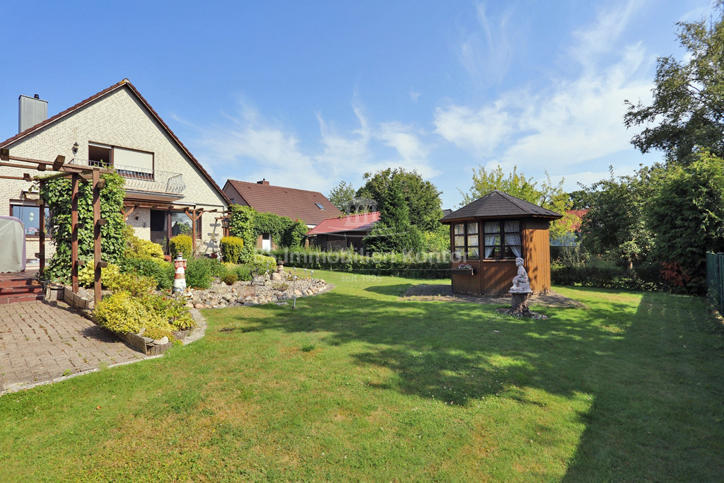 Grundstück: ca. 700 qm (Garage, Gartenanlage, Süd-West-Terrasse, Blockhaus)