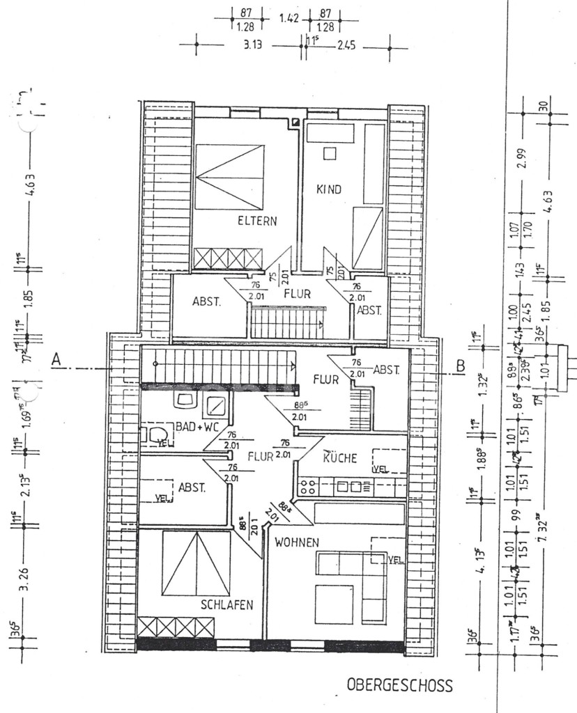 OG – Wohnung 2: Sep. Eingang, Flur/Diele, Küche, Wohnzimmer, Schlafzimmer, Duschbad, 2x Abstellraum ; Wohnfläche ca. 65qm; Kaltmiete: 550,00 €