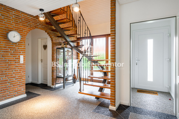 Sie suchen Wohnkomfort und Lebensqualität in Kanallage? Hier werden Sie fündig! Dieses Immobilienangebot präsentiert sich in ruhiger Wohnlage von Pewsum und besticht mit einem großzügigen Platzangebot. Das renovierte, top gepflegte Einfamilienhaus wurde 1978/79 mit einem Satteldach erstellt und lässt keine Wünsche offen. Vom einladenden Eingangsbereich eröffnet sich Ihnen der großzügige, offen gestaltete und lichtdurchflutete Wohn- und Essbereich. Lassen Sie sich von der Besonderheit dieses Objektes faszinieren und erleben Sie den Charme Ostfrieslands in ländlicher Lage. Großzügig angeordnete Fensterelemente sorgen für optimale Lichtverhältnisse in der Immobilie. Im Laufe der Jahre erfolgten umfangreiche Renovierungsmaßnahmen (vgl. Aufstellung). Zwei angelegte Terrassenplätze laden Sie zum Entspannen und Relaxen im liebevoll angelegten Garten ein. Beheizt wird die Immobilie mit einer Gas-Z.-Heizung. Der Einbau einer energieeffizienten Hybrid-Heizung (Wärmepumpe) erfolgt noch durch den Verkäufer. Eine Immobilie für Menschen die Wohnqualität mit Lebensqualität verbinden und die Nordseeküste als Wohnort bevorzugen.