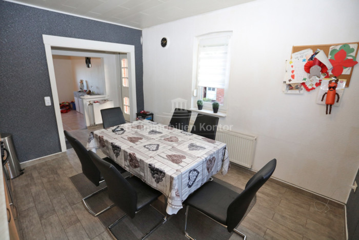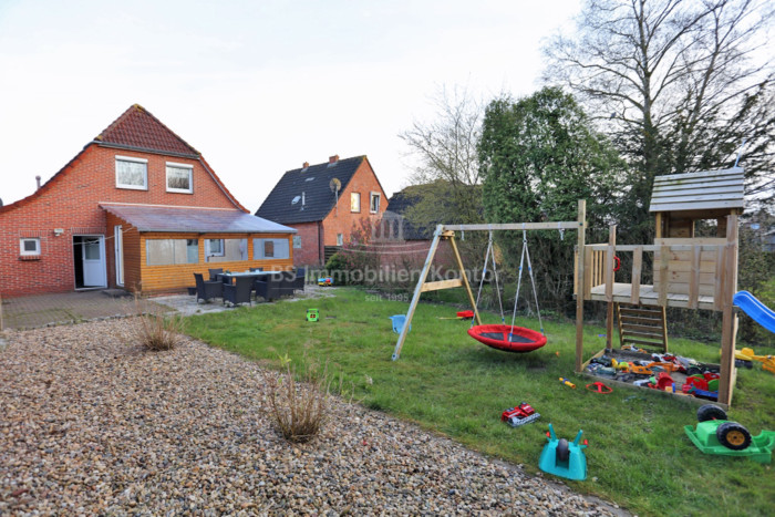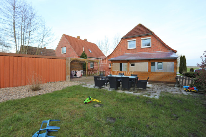 Dieses Immobilienangebot präsentiert sich in zentraler Wohnlage von Pewsum und ist derzeit vermietet (Eigenbedarf möglich). Das Einfamilienhaus wurde ca. 1931 in konventioneller Massivbauweise erstellt und befindet sich in einem teilrenovierten Zustand. Im Laufe der Jahre erfolgten diverse Renovierungsmaßnahmen (vgl. Auflistung). Die Wohnfläche von ca. 95 qm verteilt sich auf zwei Etagen. Besonders hervorzuheben ist das großzügige Grundstück und der freie Blick im rückwärtigen Bereich. Beheizt wird das Objekt durch eine Gas-Z.-Heizung (BJ: 2011). Die Kunststofffenster sind dreifachverglast und mit Jalousien ausgestattet.