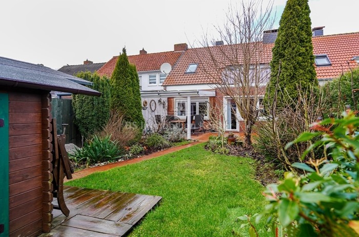 Sie suchen eine renovierte, top gepflegte Immobilie? Hier werden Sie fündig. Dieses Immobilienangebot präsentiert sich in ruhiger, zentraler Wohnlage von Borssum und lässt keine Wünsche offen. Das Reihenmittelhaus wurde ca. 1959/76 in konventioneller Massivbauweise mit einem Satteldach erstellt und im Laufe der Jahre umfangreich saniert (vgl. Auflistung). Vom einladenden Eingangsbereich eröffnet sich Ihnen der großzügige, offen gestaltete und lichtdurchflutete Wohn- und Essbereich. Die überdachte Terrasse lädt Sie zum Entspannen und Relaxen ein. Zur Immobilie gehört eine Garage. Die weißen Kunststofffenster sind Isolierverglast und überwiegend mit Jalousien ausgestattet. Beheizt wird die Immobilie durch eine Öl-Z.-Heizung. Das Erbbaugrundstück bemisst ca. 235qm und weist folgende Konditionen aus: Erbbauzins Grundstück ca. 145 € jährlich; Erbbauzins Garage ca. 80,00€ jährlich. Eine Immobilie für Menschen die Wohnqualität mit Lebensqualität verbinden und auf die Nähe zur Stadt Emden nicht verzichten möchten.
