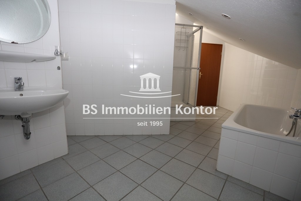 Küche, Zugang zum Dachgeschoss, Kinderzimmer, Duschbad mit WC Wfl.