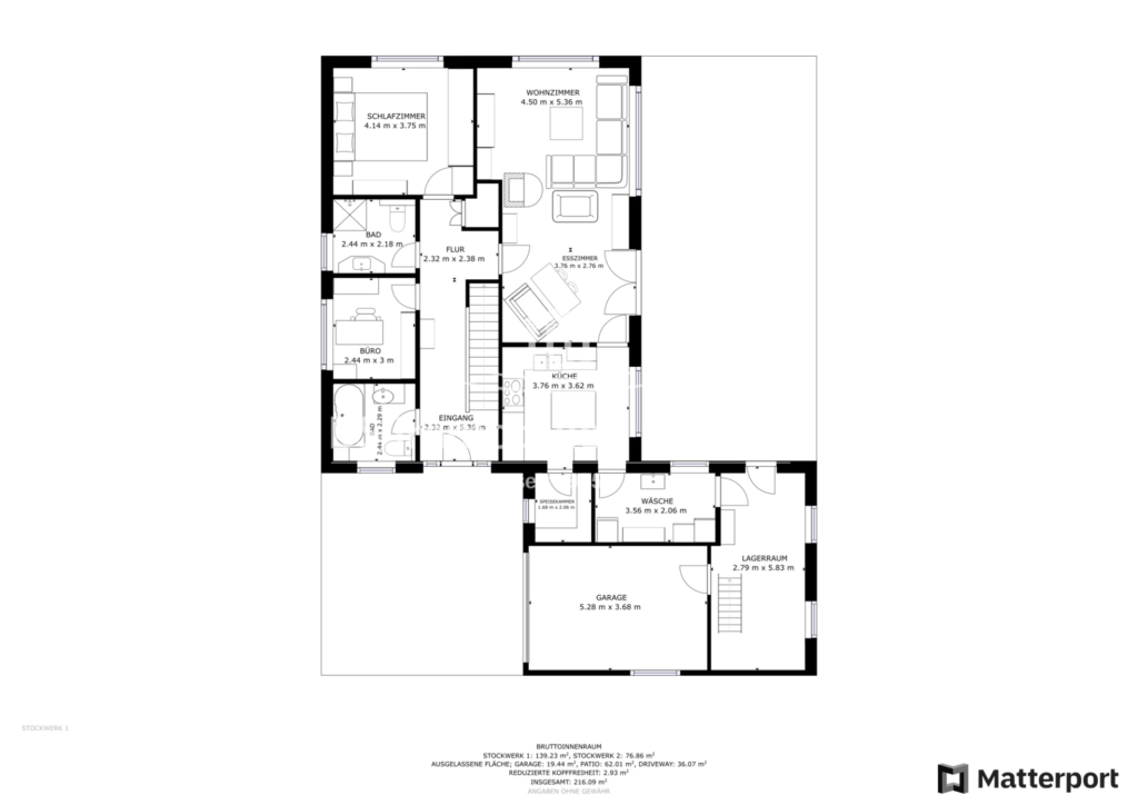 Gebäude: EG: Flur/Diele, Bad, Büro, Bad, Schlafzimmer, offener Wohn-/Essbereich, Küche, Speisekammer, HWR, Lagerraum, Garage