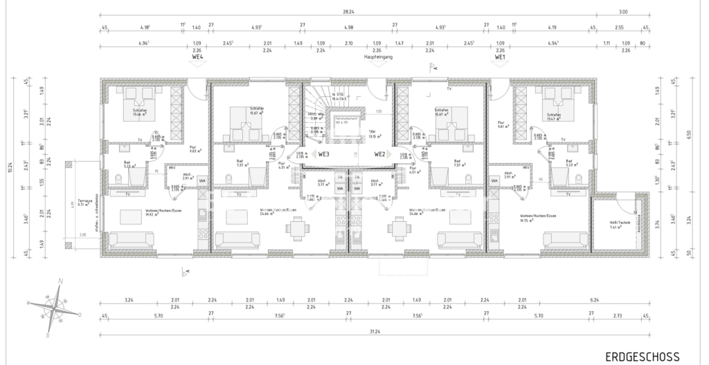 Dieser exklusive Neubau wird Sie begeistern! Die Neubau-Erdgeschoss-Wohnung wird schlüsselfertig in einer zentralen Wohnlage von Rhauderfehn in ansprechender, moderner Architektur erstellt. Auf einem großzügigen Grundstück werden neun barrierefreie, hochwertige Wohnungen für Jung und Alt erstellt. Die Fertigstellung des Gebäudes erfolgt im Jahr 2026. Die ansprechende Architektur und das durchdachte Raumkonzept bieten Wohnkomfort auf höchstem Niveau in zentraler Lage. Sämtliche Geschäfte für den täglichen Bedarf sowie Apotheken, Bildungseinrichtungen, Bäcker, Ärzte können Sie bequem erreichen. Die Erdgeschoss-Wohnung überzeugt mit einem gelungenen Raumkonzept, einer Terrasse und einer gehobenen Ausstattung. Lassen Sie sich vom lichtdurchfluteten, offenen Wohn-/Essbereich und der hochwertigen Bauausführung überzeugen. Beheizt wird das Objekt durch eine Luft-Wärmepumpe. Die Kunststofffenster sind dreifachverglast und mit elektrischen Jalousien ausgestattet.