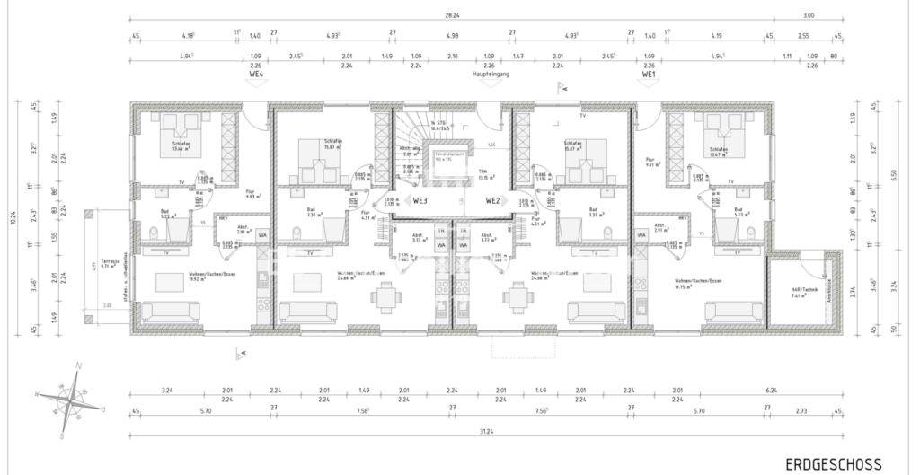 Dieser exklusive Neubau wird Sie begeistern! Die Neubau-Obergeschoss-Wohnung wird schlüsselfertig in einer zentralen Wohnlage von Rhauderfehn in ansprechender, moderner Architektur erstellt. Auf einem großzügigen Grundstück werden neun barrierefreie, hochwertige Wohnungen für Jung und Alt erstellt. Die Fertigstellung des Gebäudes erfolgt im Jahr 2026. Die ansprechende Architektur und das durchdachte Raumkonzept bieten Wohnkomfort auf höchstem Niveau in zentraler Lage. Sämtliche Geschäfte für den täglichen Bedarf sowie Apotheken, Bildungseinrichtungen, Bäcker, Ärzte können Sie bequem erreichen. Die Obergeschoss-Wohnung überzeugt mit einem gelungenen Raumkonzept, einem Balkon und einer gehobenen Ausstattung. Lassen Sie sich vom lichtdurchfluteten, offenen Wohn-/Essbereich und der hochwertigen Bauausführung überzeugen. Beheizt wird das Objekt durch eine Luft-Wärmepumpe. Die Kunststofffenster sind dreifachverglast und mit elektrischen Jalousien ausgestattet.