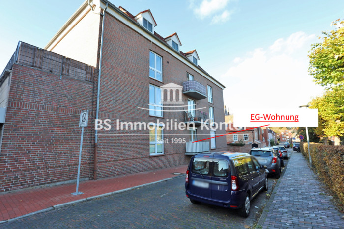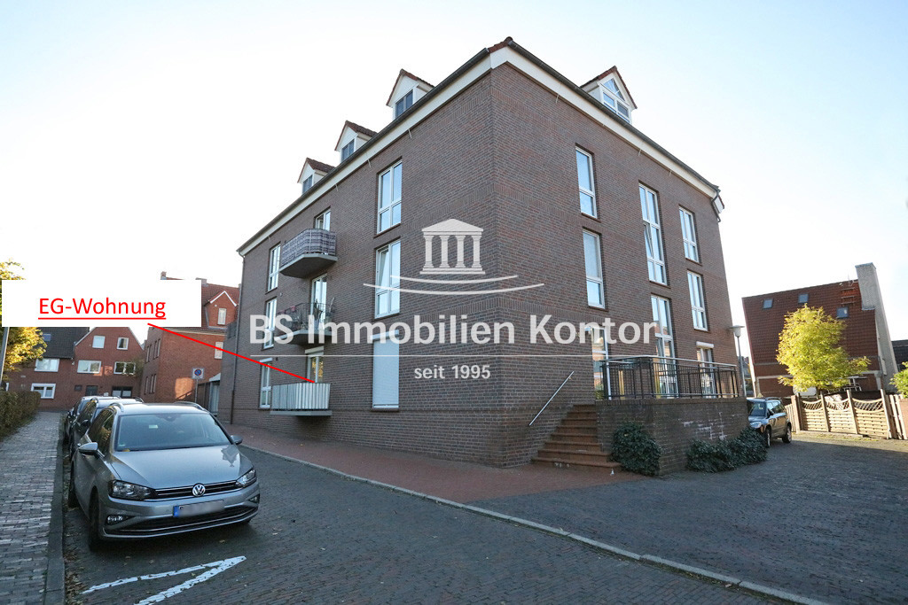 EG: Flur/Diele, Schlafzimmer, Wohnküche mit Zugang zum Balkon, Vollbad, Wohnzimmer, Heizungsraum
