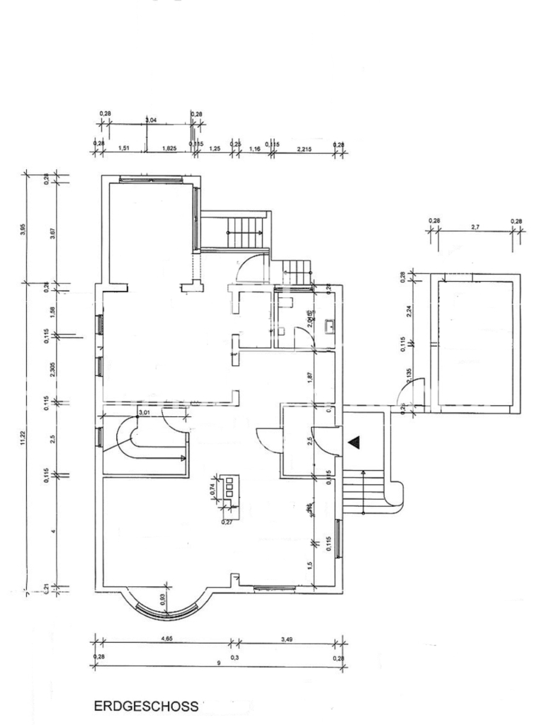 EG: Windfang, Flur, Büro, gr. Schlafzimmer, WC, Küche mit Essbereich, Arbeitszimmer