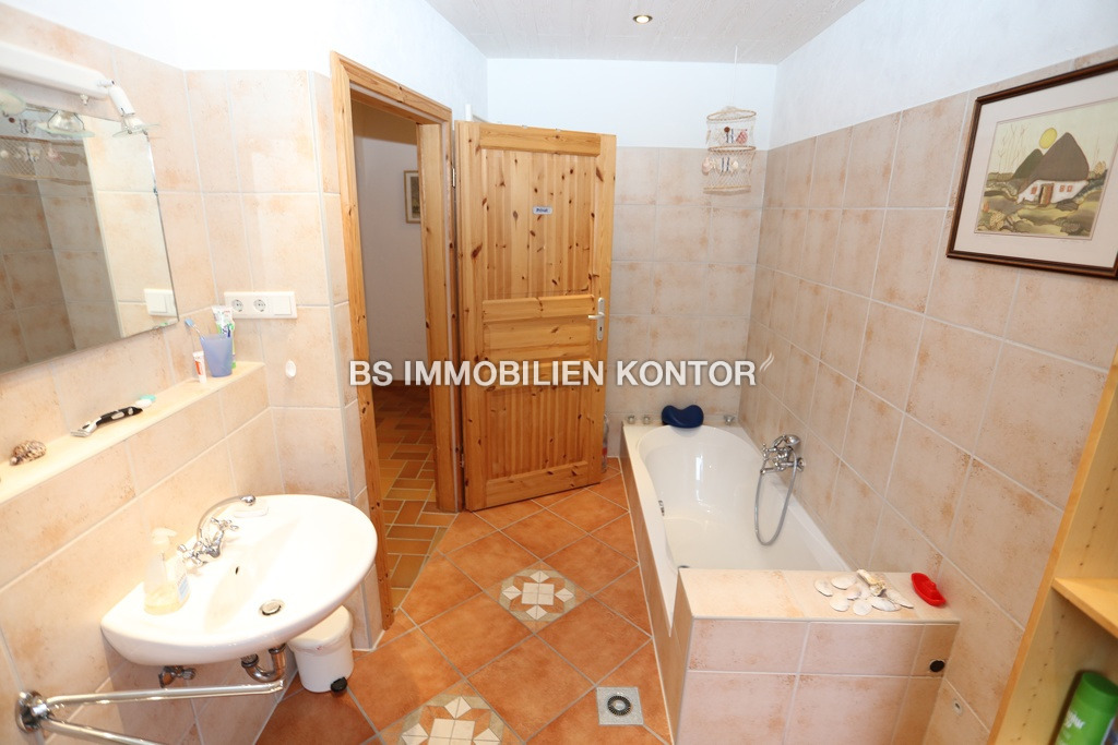 EG: Flur/Diele, Wohnzimmer mit Kaminofen, Duschbad mit WC, Wannenbad mit WC, Schlafzimmer, Wohnküche mit Essbereich, Stallbereich/Abstellfläche