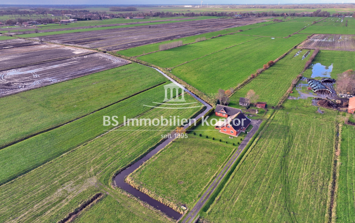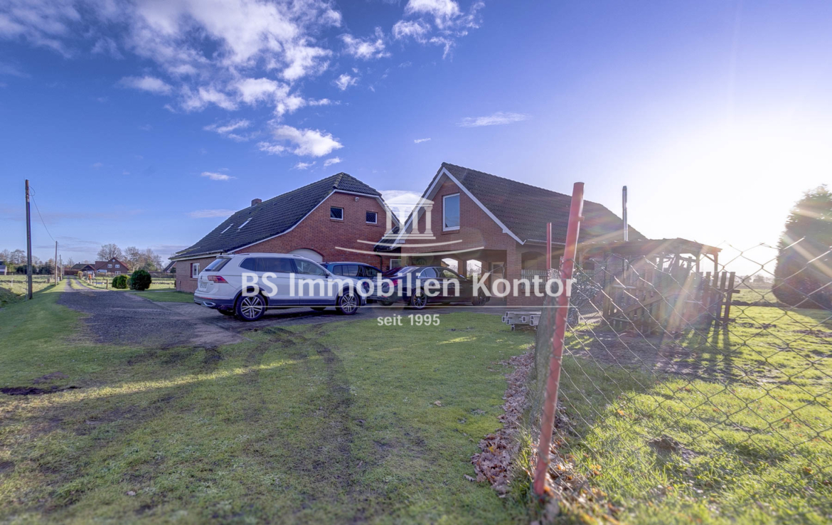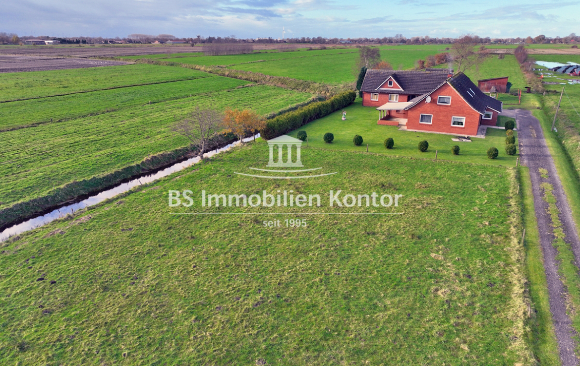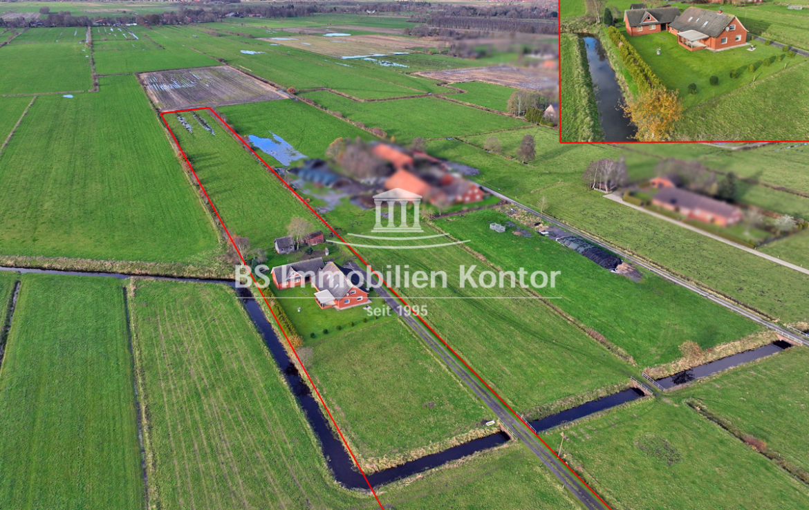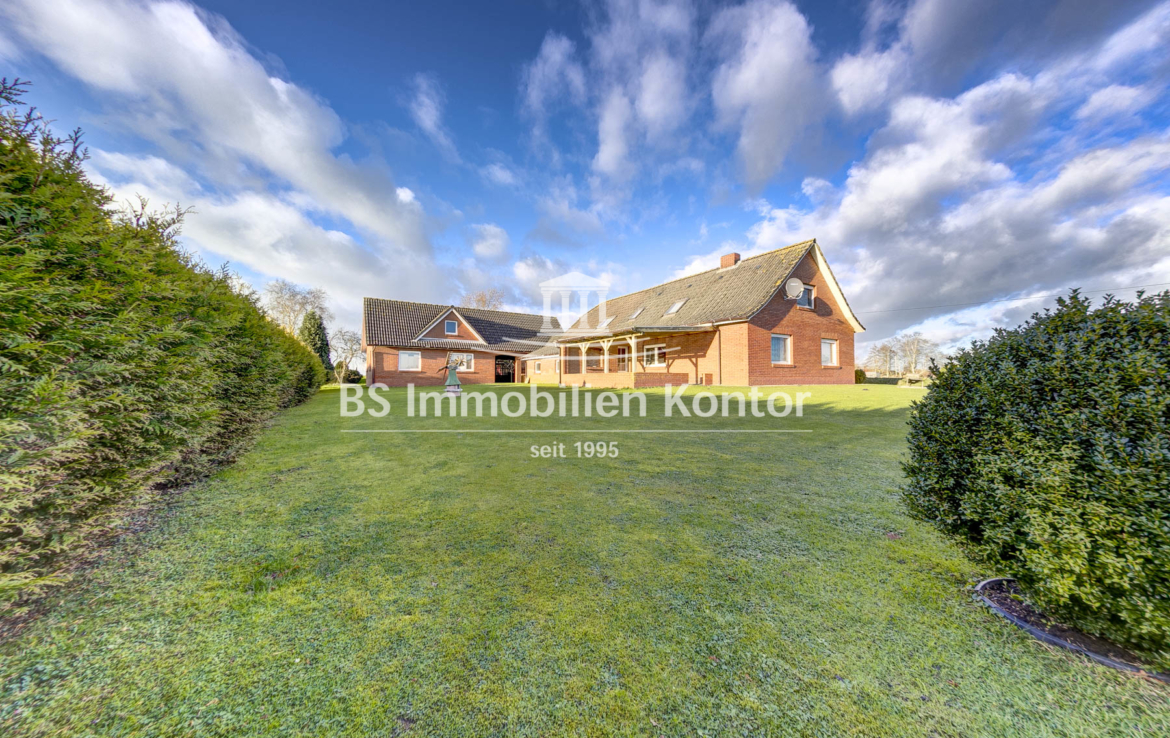 Hier sagen sich Fuchs und Hase gute Nacht! Dieses besondere Immobilienangebot präsentiert sich in einer absoluten Alleinlage von Wiegboldsbur. Eingebettet und umgeben von der Natur erreichen Sie diese Immobilie über eine private Zuwegung. Die Immobilie wurde ca. 1912 in Massivbauweise erbaut mit einem Satteldach erstellt. 1988 erfolgte ein Umbau inkl. neuer Verklinkerung des Mauerwerks. 1997 wurde im rückwärtigen Bereich das großzügige Nebengebäude erstellt. Das großzügige Grundstücksareal umfasst ca. 12.900qm und eignet sich idealerweise zur Tierhaltung. Hier können sich Mensch und Tier frei entfalten. Beheizt wird die Immobilie durch Elektroöfen und einem Kamin (Gasleitung liegt an der Hauptstraße). Eine Immobilie für Menschen und Individualisten die Wohnqualität mit Lebensqualität verbinden und im Einklang mit der Natur Ihren stressigen Alltag entfliehen möchten.