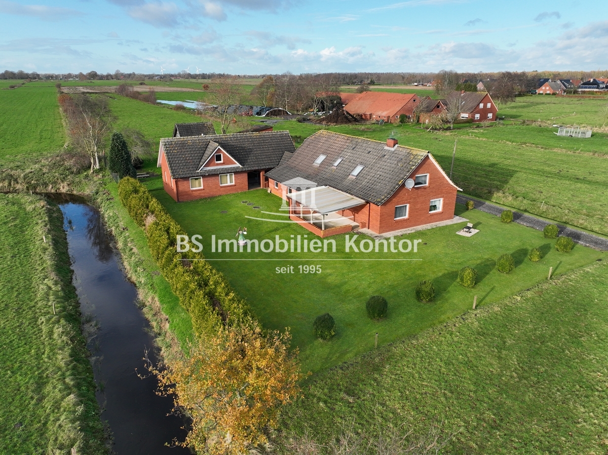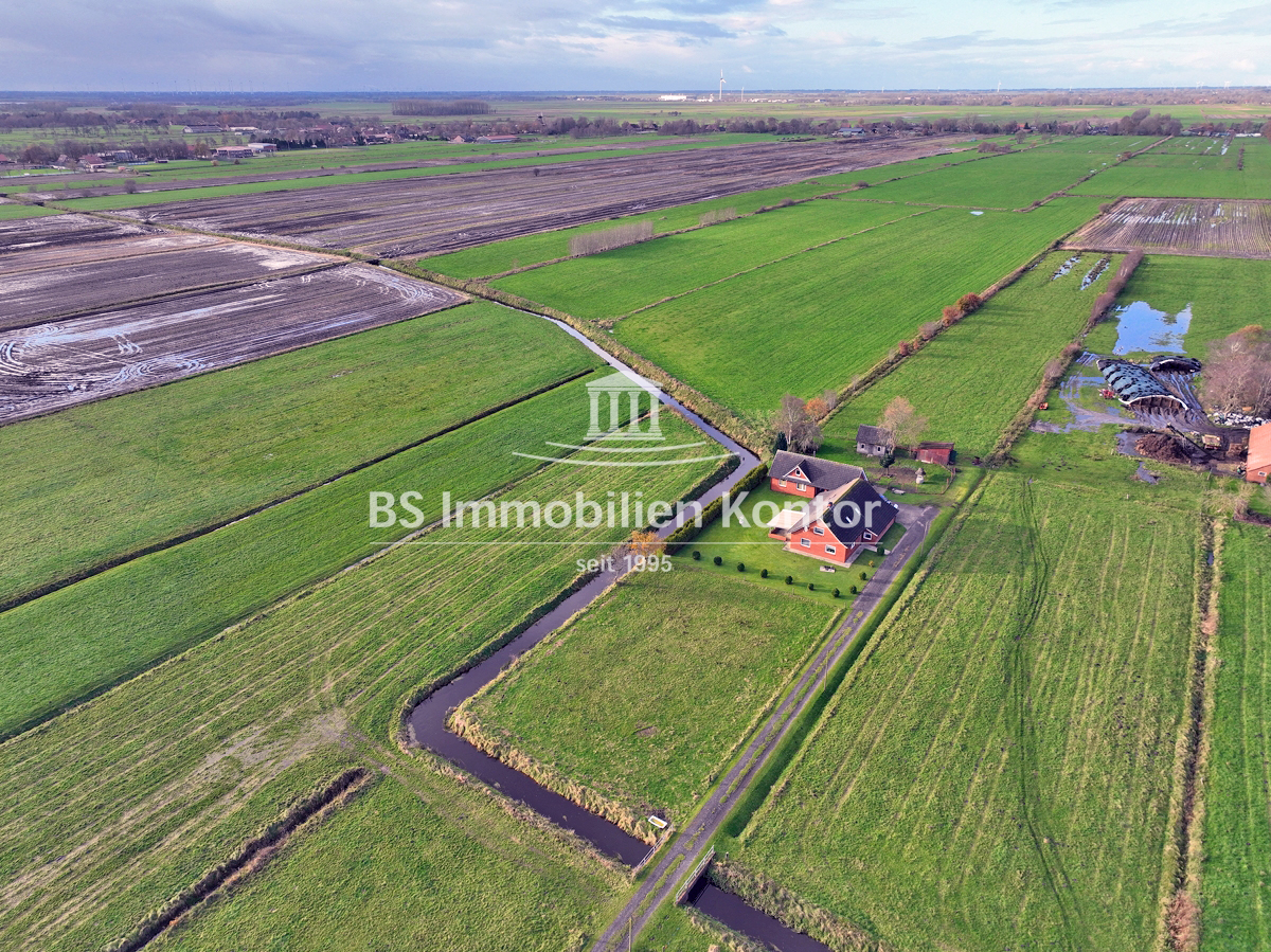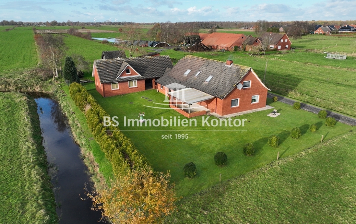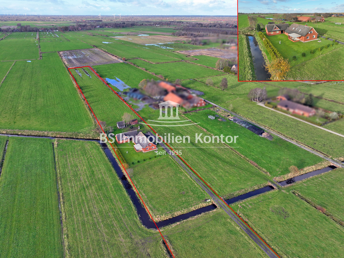 Hier sagen sich Fuchs und Hase gute Nacht! Dieses besondere Immobilienangebot präsentiert sich in einer absoluten Alleinlage von Wiegboldsbur. Eingebettet und umgeben von der Natur erreichen Sie diese Immobilie über eine private Zuwegung. Die Immobilie wurde ca. 1912 in Massivbauweise erbaut mit einem Satteldach erstellt. 1988 erfolgte ein Umbau inkl. neuer Verklinkerung des Mauerwerks. 1997 wurde im rückwärtigen Bereich das großzügige Nebengebäude erstellt. Das großzügige Grundstücksareal umfasst ca. 12.900qm und eignet sich idealerweise zur Tierhaltung. Hier können sich Mensch und Tier frei entfalten. Beheizt wird die Immobilie durch Elektroöfen und einem Kamin (Gasleitung liegt an der Hauptstraße). Eine Immobilie für Menschen und Individualisten die Wohnqualität mit Lebensqualität verbinden und im Einklang mit der Natur Ihren stressigen Alltag entfliehen möchten.