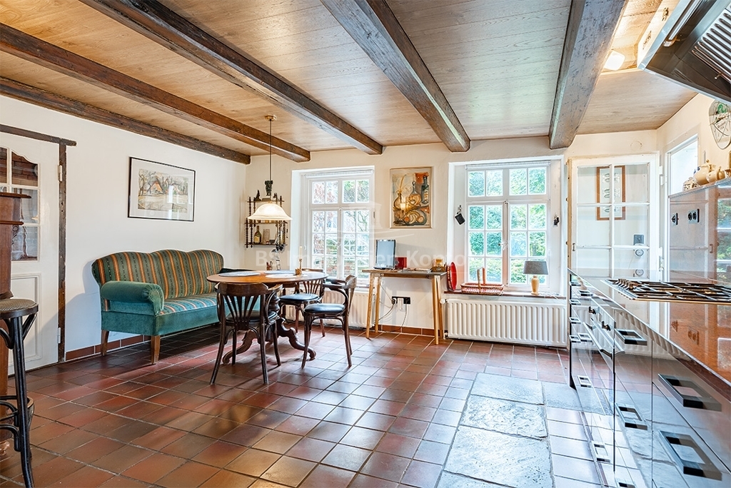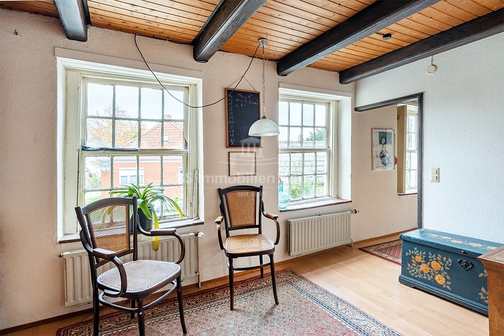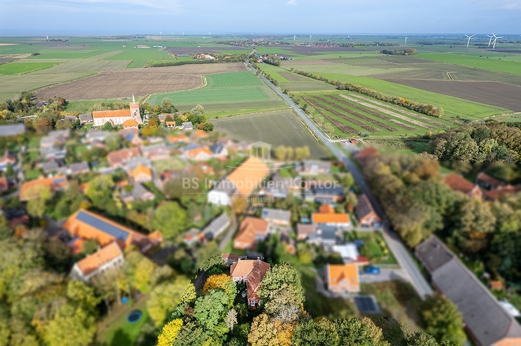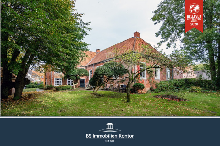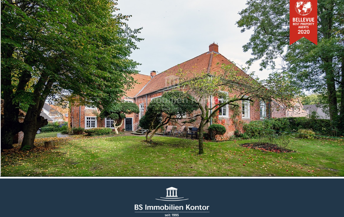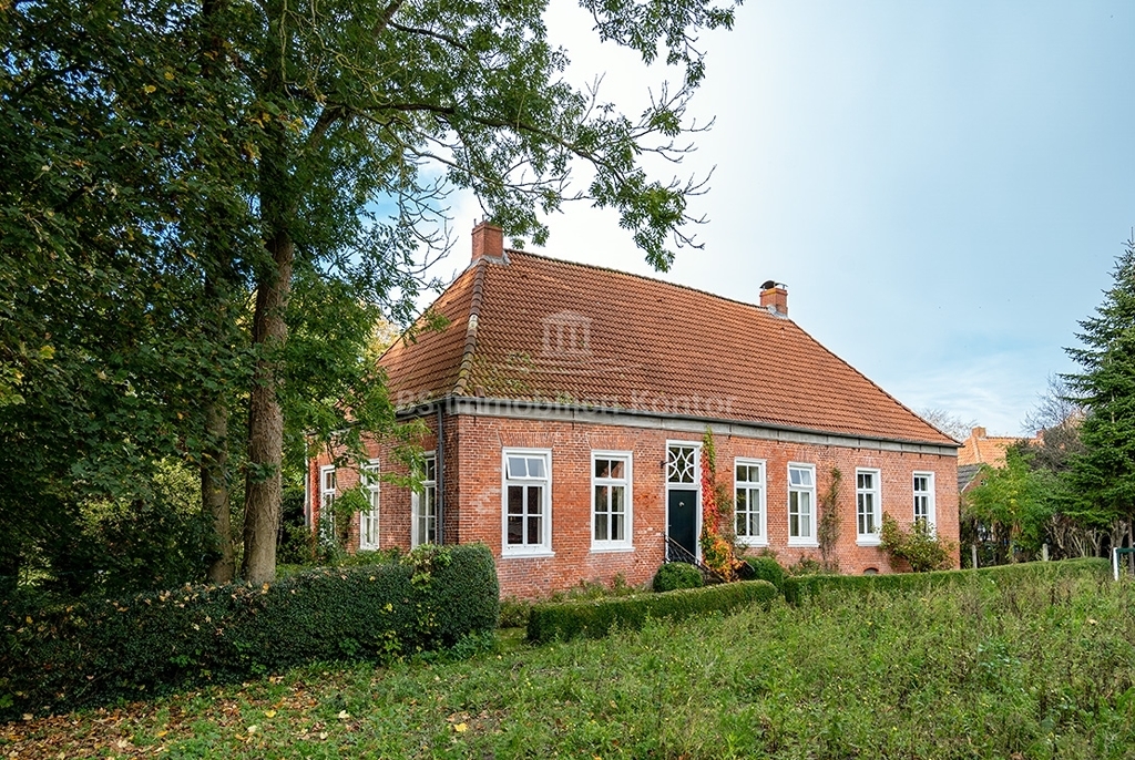 Sie suchen ein historisches Gemäuer mit besonderer Geschichte? Hier werden Sie fündig. Die „Villa Brons“ wird Sie bereits beim Betreten in ihren Bann ziehen. Die anmutige Villa befindet sich im Ort Groothusen in der Gemeinde Krummhörn. Im frühen Mittelalter war Groothusen ein bedeutender Handelsort und lag, wie viele andere Orte der Krummhörn, an einer Meeresbucht, die für die Schifffahrt nutzbar war. Die Villa steht auf dem Fundament der damaligen Middelsteburg. Diese Burg wurde im 14. Jahrhundert vom Häuptling Udo Tiardekana als Steinhaus erbaut, gehörte später zum Besitz der Häuptlingsfamilie Beninga und im 16. Jahrhundert nannten die Besitzer der noch heute im Ort existierenden Osterburg dieses Gebäude ihr Eigentum. Dann erwarb der Emder Kaufmann und Reeder Konsul Ysaak Brons 1832 die Middelsteburg. Auf dem bewahrten Untergeschoss samt Gewölbe der alten Burg ließ der neue Eigentümer die bis heute erhaltene Villa Brons errichten. In liebevoller bereits teilweise durchgeführter Restauration präsentiert sich dieses Objekt erhaben auf einem schönen ca. 1642 qm großen Grundstück mit altem Baumbestand. Der bekannte Kunstmaler Reinhard Schmidt erwarb das Objekt 1976 und bewohnte es nicht nur mit seiner Familie, sondern nutzte es auch zur Ausstellung seiner überwiegend dort entstandenen Werke. Zahlreiche Stilelemente wie z. B. Dielenböden bzw. Parkett, historischer Kachelofen, Sprossenfenster, hohe Decken etc. unterstreichen den ganz besonderen eleganten Charakter dieser Immobilie. Beheizt wird das Objekt durch eine Gas-Z.-Heizung (BJ: 2003). Die Holzfenster sind größtenteils einfach verglast. Eine Immobilie für Menschen die den Erhalt dieses seltenen historischen Gebäudes mit seinem großzügigen Charakter zu schätzen wissen.