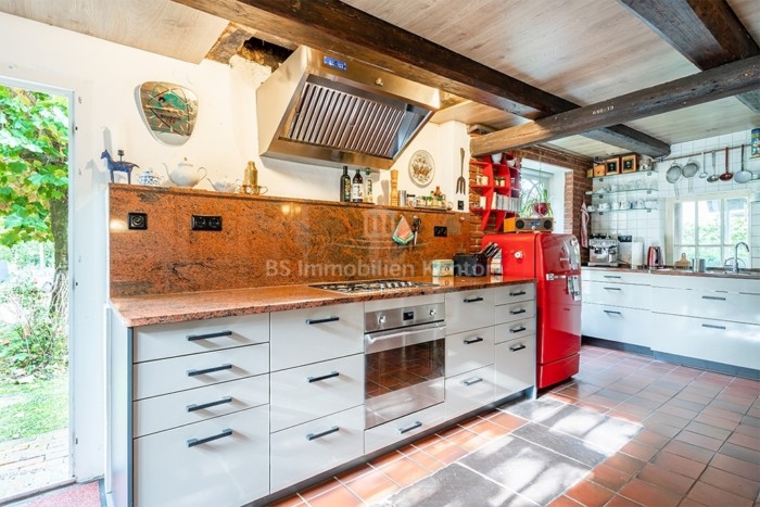 -2014 Einbauküche erneuert mit Granitarbeitsplatte, 5-flammiger Gasherd mit elektr. Backofen mit Pizzastein (Smeg)