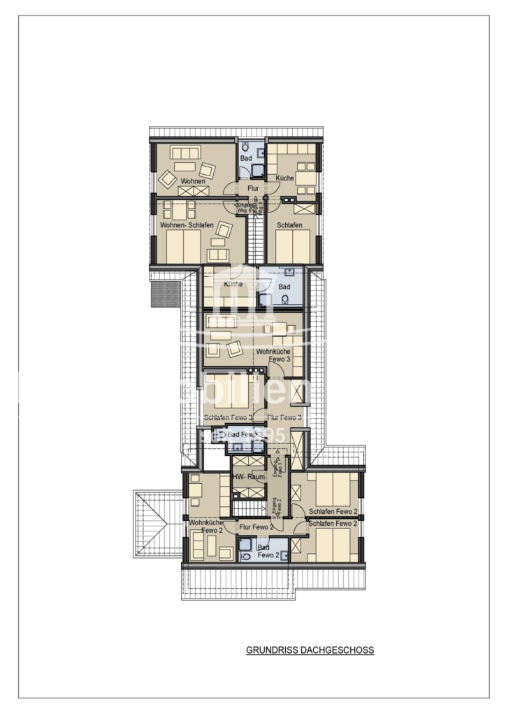 OG-Dauerwohnung Nr. 6: Flur/Diele, Küche, Wohnzimmer, 2x Schlafzimmer, Duschbad mit WC, Abstellraum; Wfl. ca. 28,81qm