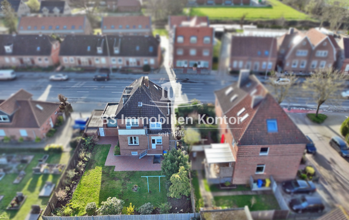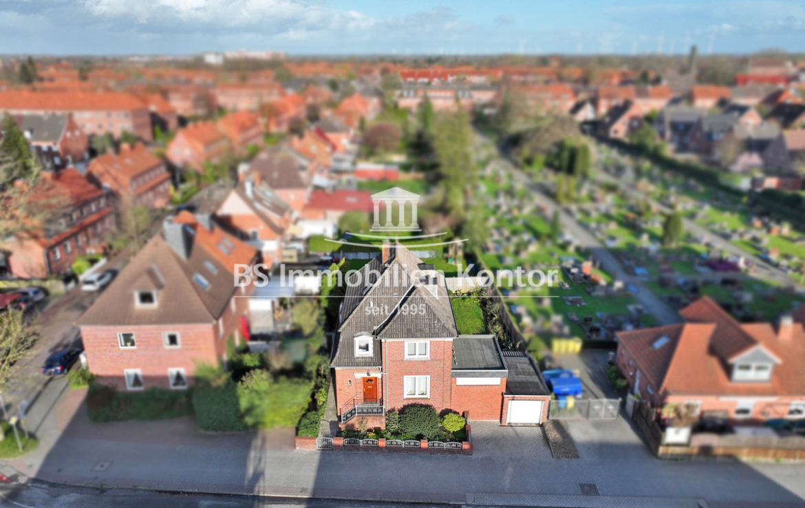 Dieses charmante Einfamilienhaus wurde 1933 in konventioneller Massivbauweise im „Stadtvillenstil“ in zentraler Lage von Emden erstellt. In fußläufiger Entfernung erreichen Sie zahlreiche Einkaufsmöglichkeiten für den täglichen Bedarf, Ärzte, Apotheken, das Krankenhaus, die Fachhochschule und weitere Bildungseinrichtungen. Im Laufe der Jahre erfolgten diverse Renovierungsmaßnahmen vgl. sep. Auflistung. Mit einer Wohn-/Nutzfläche von ca. 146qm bietet Ihnen diese Immobilie ausreichend Platz und Entfaltungsmöglichkeiten für die ganze Familie. Bei dem ca. 454qm großen Grundstück handelt es sich um ein Eigentumsgrundstück. Die weißen Kunststofffenster sind Isolierverglast. Beheizt wird die Immobilie mit einer Gas-Z.-Heizung (BJ: 1988).