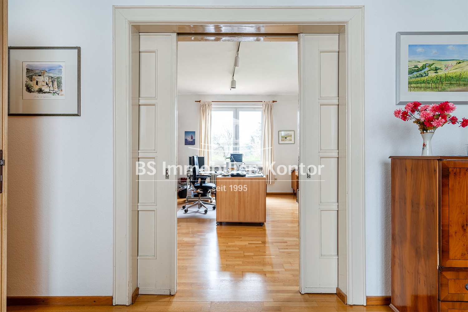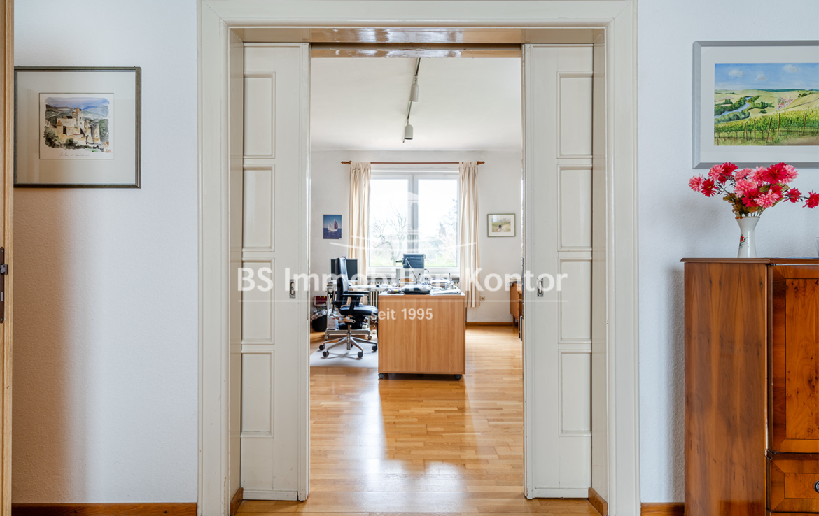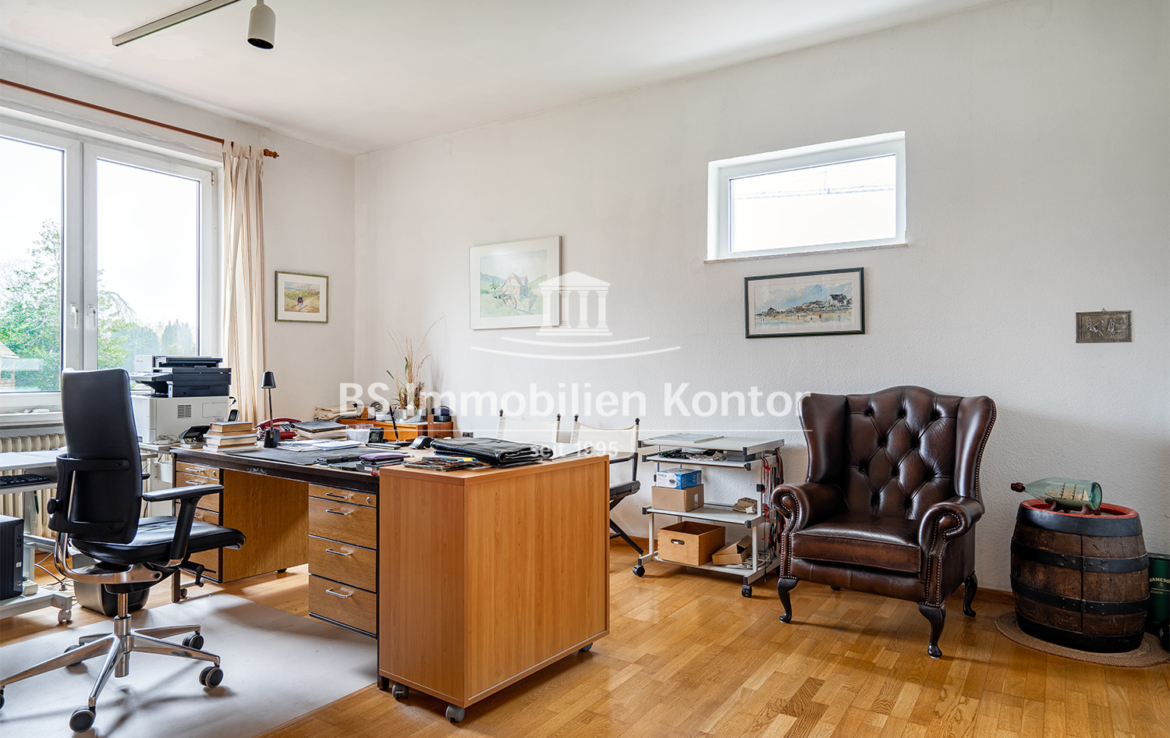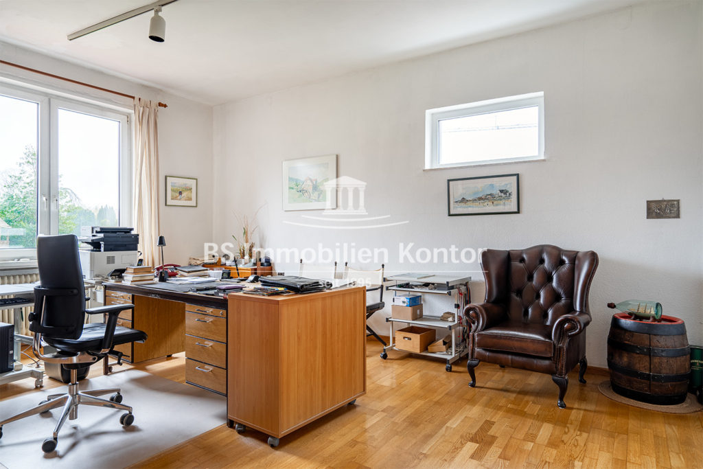 EG: Windfang, Flur/Diele, offener Wohn-/Essbereich, Büro, Küche, Gäste WC