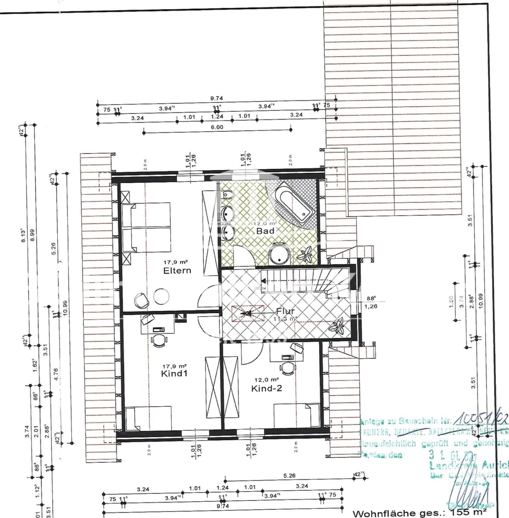 OG: Flur/Diele, Elternschlafzimmer, 2x Kinderzimmer, Badezimmer