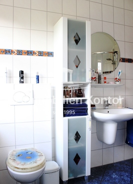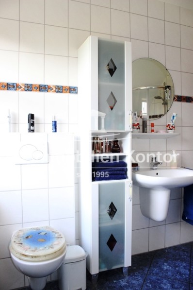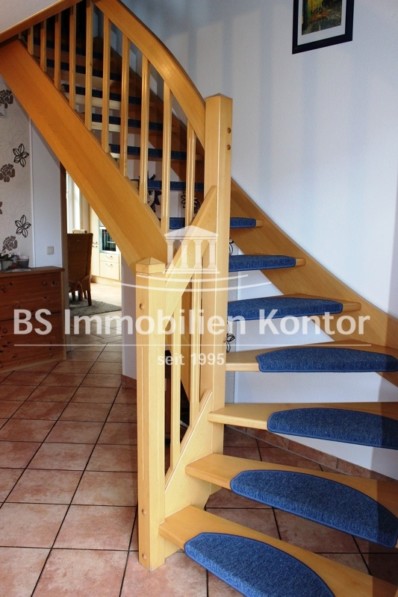 Dieses wirklich top gepflegte Einfamilienhaus wurde 2003 in Massivbauweise mit einem Krüppelwalmdach erstellt. Der Zuschnitt und die Aufteilung der Räumlichkeiten wurde sorgfältig geplant und bietet individuelle Nutzungsmöglichkeiten für die ganze Familie. Beheizt wird die Immobilie durch ein Gas-Z-Heizung (Einbau 2021, Brennwertanlage) mit W-Heizkörpern u. einer zusätzlichen Fußbodenerwärmung in den Bereichen: Küche, Wohnzimmer und Bäder. Der schöne Kachelkamin verfügt über Außenzuluft und eine vom Schornsteinfeger ausgestellte Bescheinigung der unbefristeten Nutzung. Die vorhandenen Kunststofffenster (innenliegende Sprossen) verfügen über Iso-Vergl. und sind teilweise mit Außenrollladen versehen. Bis auf das Gästezimmer (Auslegware) wurde der gesamte Boden im ebenerdigen Bereich sowie das Vollbad und der Heizungsraum im DG mit Fliesen ausgestattet. Alle anderen Böden sind mit Vinyl oder Auslegware versehen. Besonders hervorzuheben ist der fast neuwertige Gesamteindruck dieser schönen und wirklich gepflegten Immobilie. Die hellen u. lichtdurchfluteten Räume vermitteln ein sehr wohnliches Ambiente. Ein echter Blickfang ist die schöne massive Holztreppe (Buche) zum DG sowie die rückwärtig teilw. nicht einsehbare Gartenanlage mit großem Terrassenplatz. Nutzen Sie die eher seltene Möglichkeit, um ein fast neuwertiges Objekt in zentraler ruhiger Ortskernlage zu erwerben. Aufgrund der gestiegenen Material- u. Baukosten der letzten Jahre, müssten bei Erstellung einer solchen Immobilie heutzutage wesentlich höhere Kosten kalkuliert werden. Insgesamt gesehen eine sehr schöne und auch repräsentative Wohnimmobilie im fairen Preis-Leistungsverhältnis.