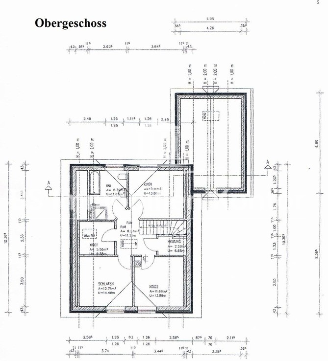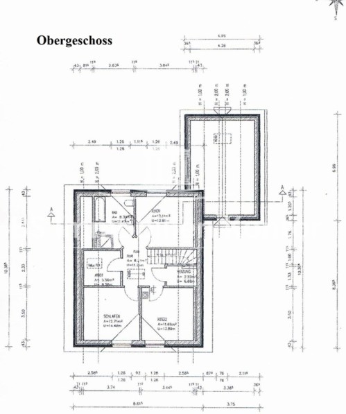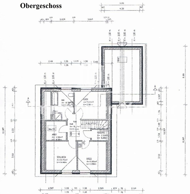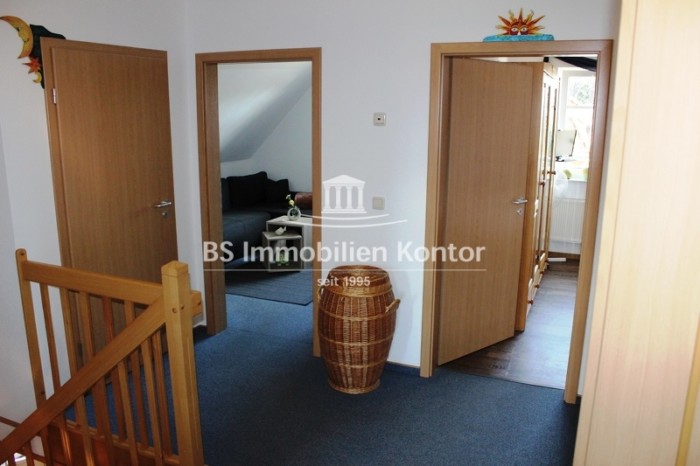 Flur (ca. 6,24 m²), Badezimmer/Vollbad (ca. 8,39 m²), E-Schlafzimmer (ca. 12,71m²), 2 x Kinderzimmer (ca. 12,11 m² u. ca. 11,69 m²), Heizungsr. (ca. 2,59 m²), Büro (ca. 5,56 m²)