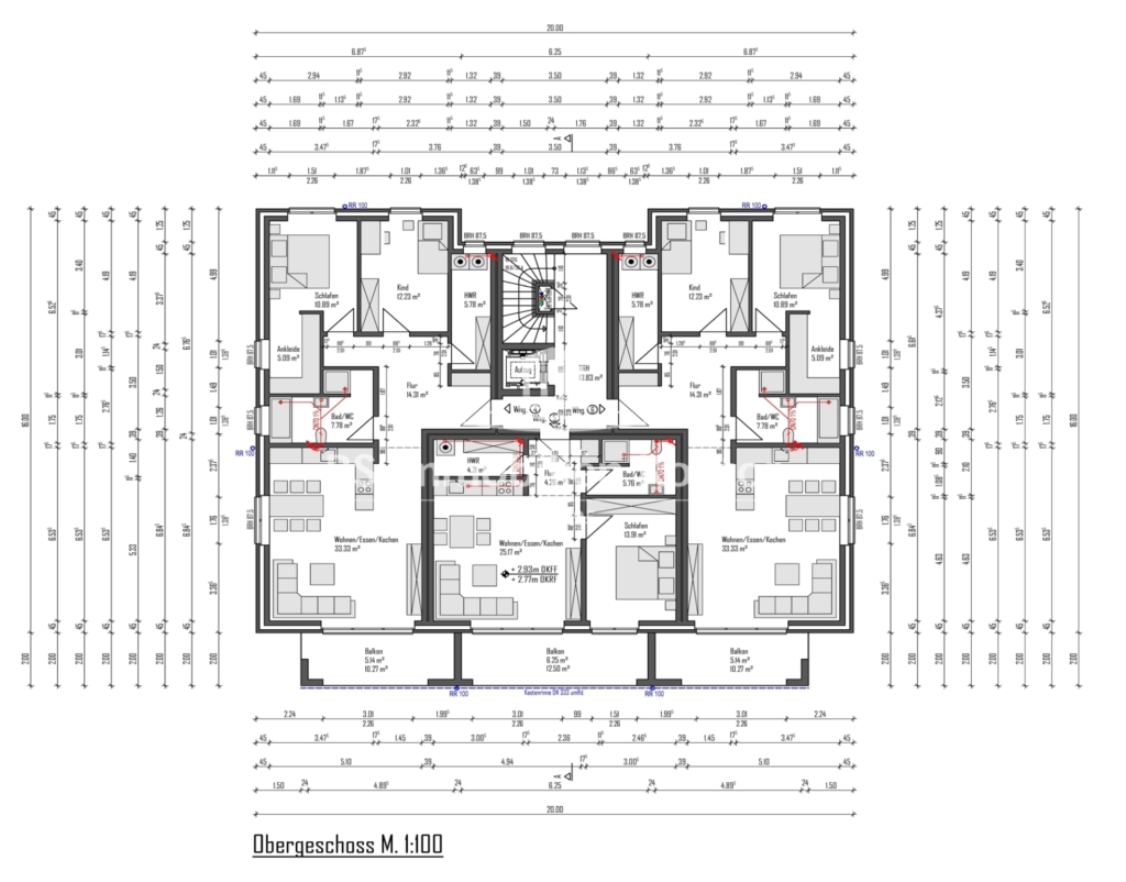 Gebäude: OG: Flur/Diele, offener Wohn-/Essbereich mit Küche und Zugang zum Balkon, Badezimmer, Elternschlafzimmer mit Ankleide, Kinderzimmer, HWR