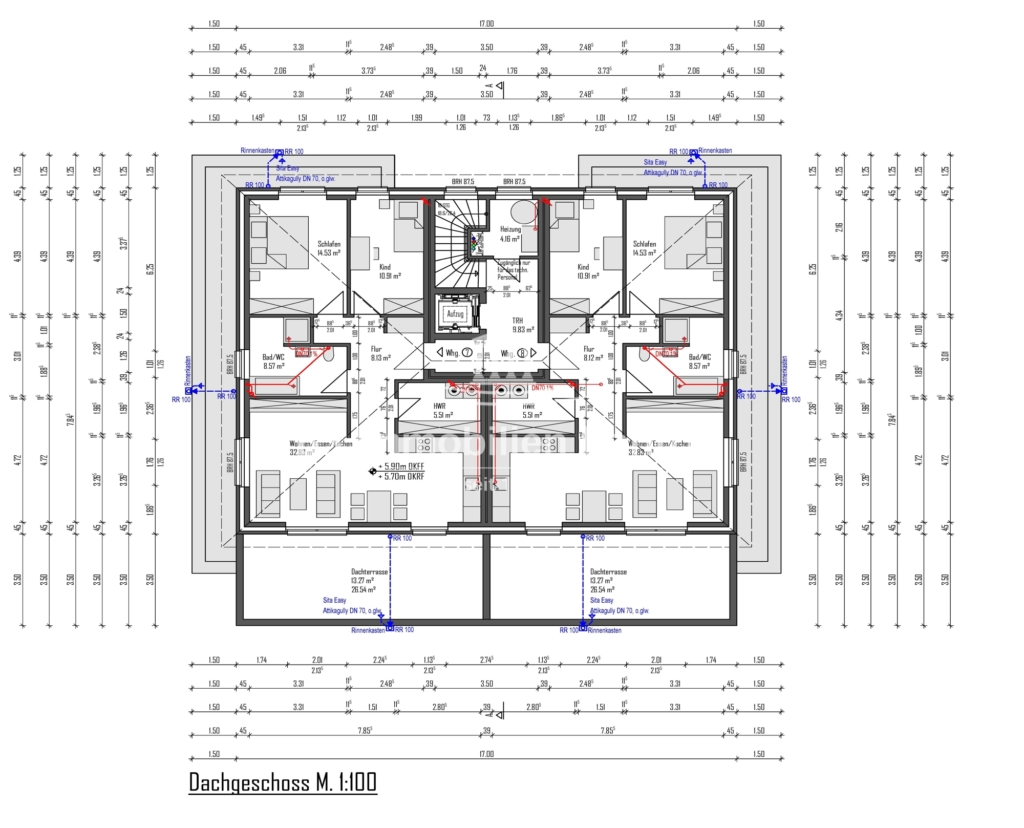 Gebäude: DG: Flur/Diele, offener Wohn-/Essbereich mit Küche und Zugang zur Dachterrasse, Badezimmer, Elternschlafzimmer, Kinderzimmer, HWR