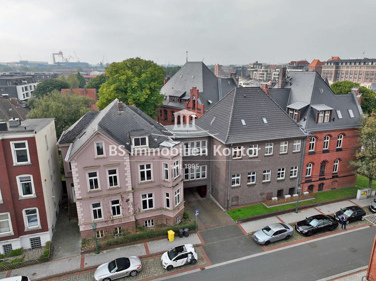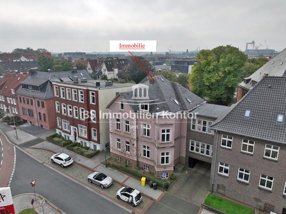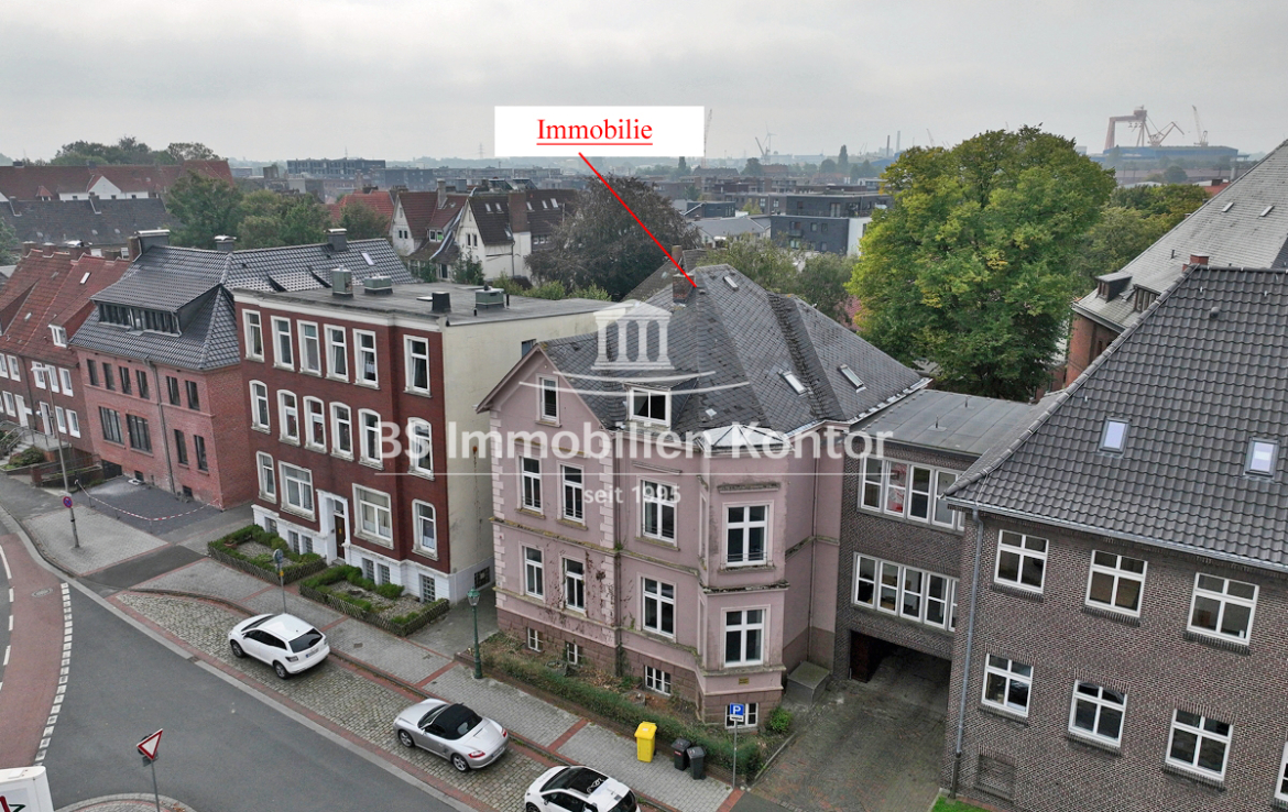 Sie suchen Altbaucharme in der Innenstadt? Hier werden Sie fündig! Wallanlagen oder Kultur, Tradition oder Moderne, Stadt- oder Landleben, diese Stadtvilla ist in jedem Fall ganz nah dran. Im Herzen von Emden präsentiert sich diese Immobilie auf einem ca. 300qm Eigentumsgrundstück. Die Wohn-/Nutzfläche von ca. 352qm verteilt sich über drei Etagen (Erd-/Ober-/u. Dachgeschoss). Das Erdgeschoss und Obergeschoss mit einer Fläche von jeweils ca. 133qm diente einer Büronutzung. Im Dachgeschoss befindet sich eine ca. 85qm große Wohnung. Jede Einheit erreichen Sie über das Treppenhaus mit formschöner Holztreppe. Hohe Decken und großzügige Fensterelemente unterstreichen den Charme dieser Immobilie. Die Fenster sind mit einer Isolierverglasung ausgestattet. Beheizt wird die Wohnung durch eine Gas-Z.-Heizung. Zur Beheizung des Erd-/u. Obergeschosses muss eine neue Heizung installiert werden. Dieses Immobilienangebot überzeugt mit einer guten Lage und hohen Entwicklungspotenzial. Gerne überzeugen wir Sie in einer persönlichen Besichtigung.
