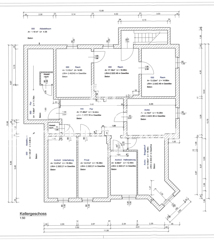 Gesamt: Wohn-/Nutzfläche 352,33qm; Nutzfläche Keller ca. 137,38qm