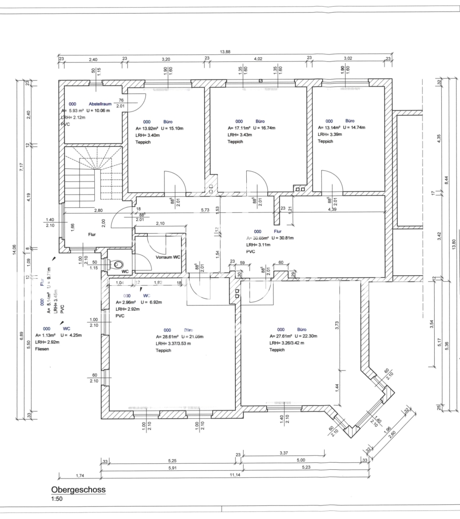 OG:Treppenhaus, 5x Büroraum, Aktenarchiv, WC