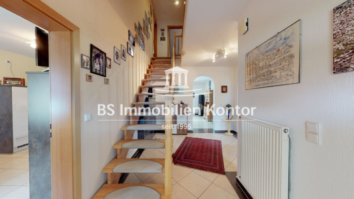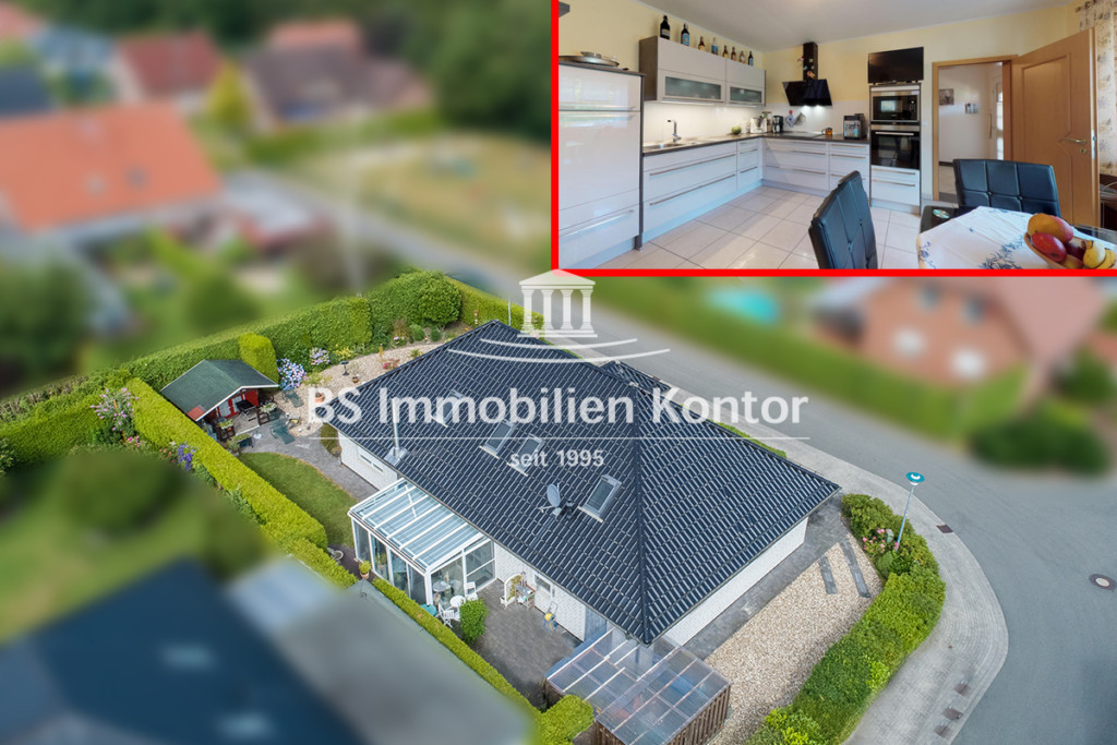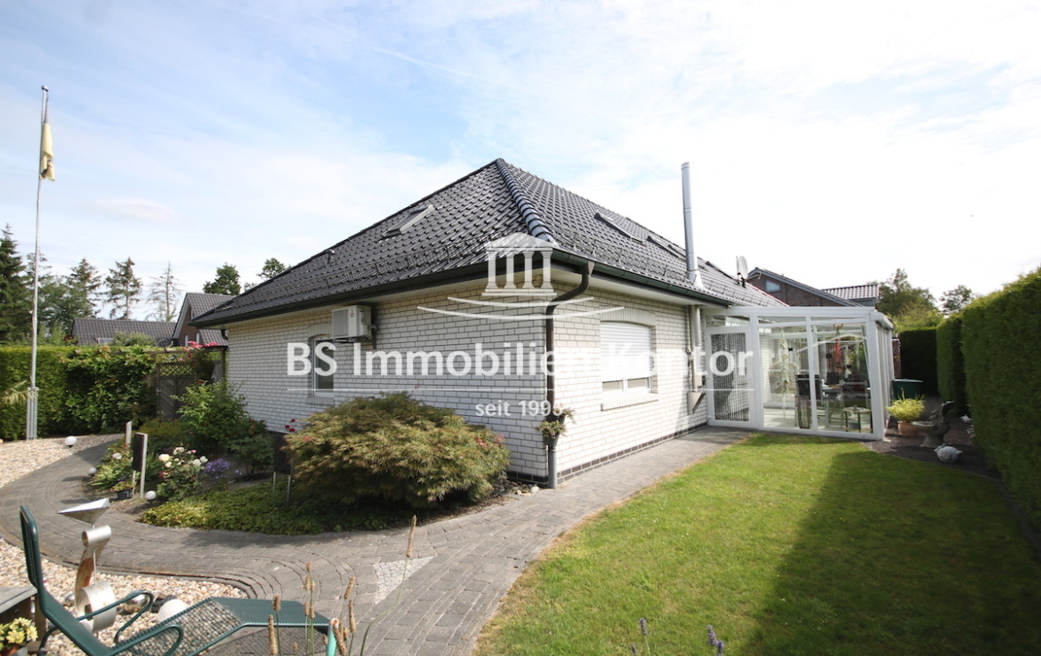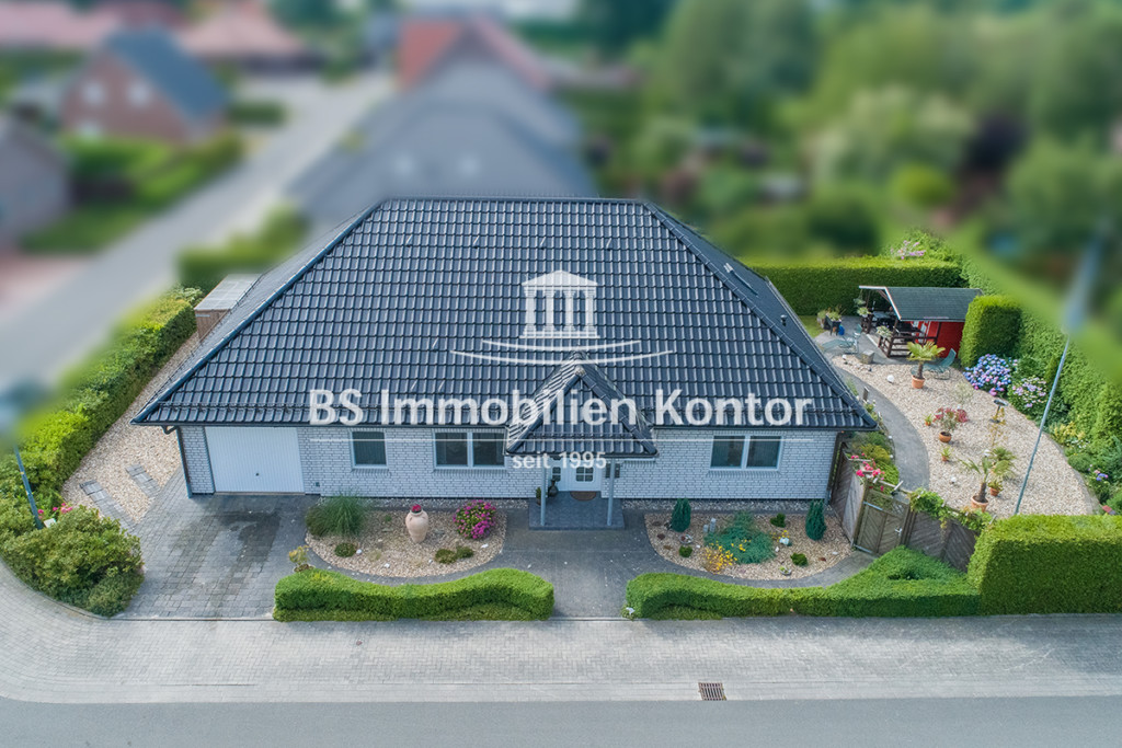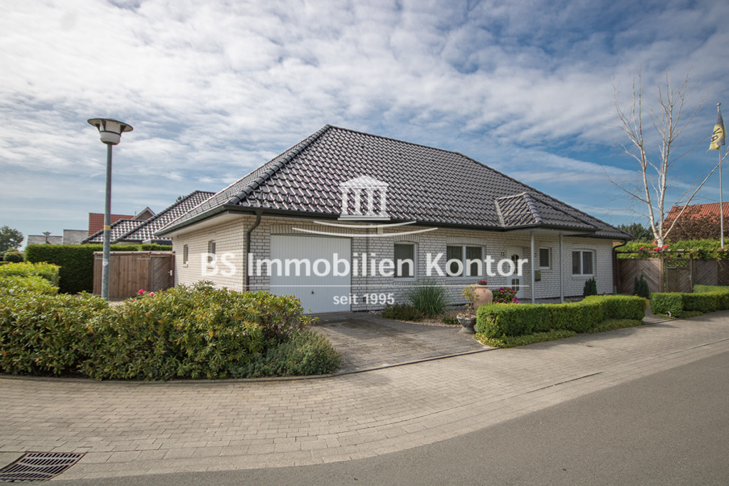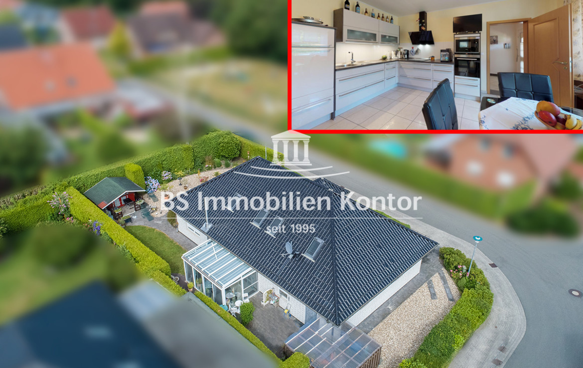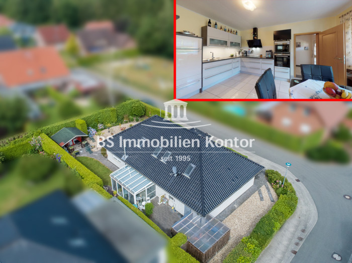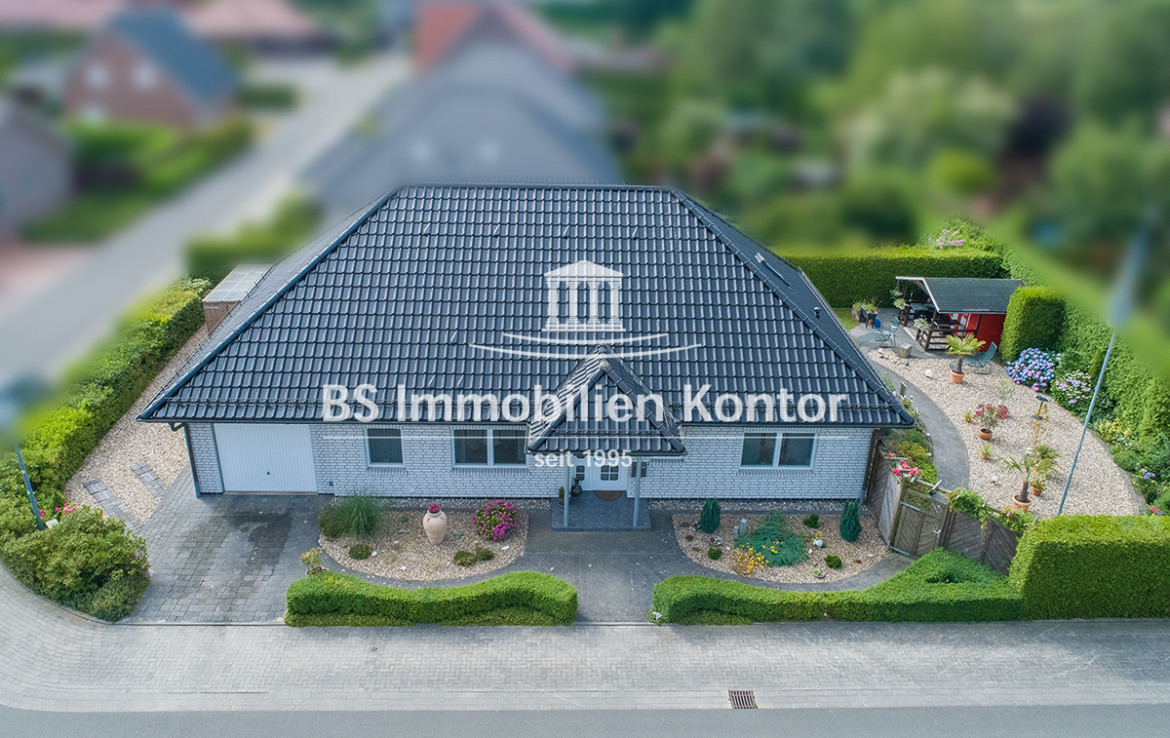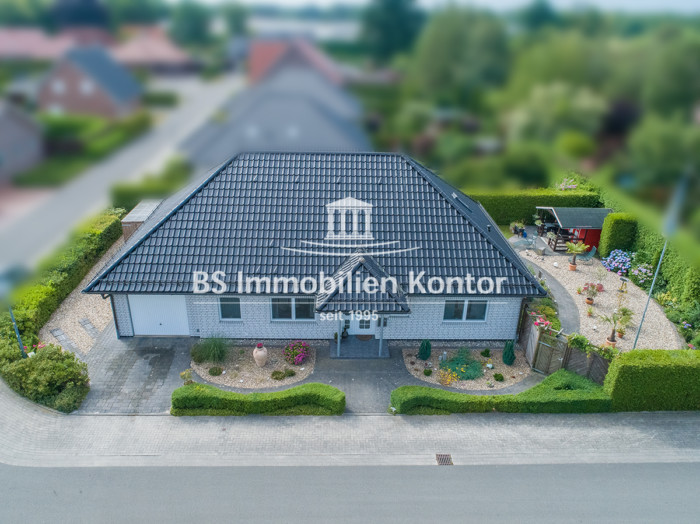 Dieser Top gepflegte Bungalow erstellt mit weißem Emsländer- Verblendmauerwerk sowie mit engobierten Tondachziegeln und Kupferdachrinnen befindet sich in einer ruhigen, bevorzugten Wohnlage von Papenburg OT. Obenende. Das Erdgeschoss erstreckt sich aus dem Flur, Küche, Wohnzimmer, Gästezimmer, Gäste-WC, Duschbad, HWR mit integrierter Sauna und Dusche sowie dem Heizungsraum. Durch den Ausbau des Dachgeschosses ist dieser Bungalow auch für Familien geeignet. Im Obergeschoss befinden sich Flur, 3x Zimmer und ein Duschbad mit WC. Die Bäder im Erdgeschoss und Obergeschoß wurden 2016 erneuert. Die nachträglich eingebaute Klimaanlage sorgt bei besonders heißen Tagen in verschiedenen Räumen für eine angenehme Raumtemperatur. Beheizt wird dieses Objekt durch eine Gas-Z.-Heizung, einer Fußbodenerwärmung (Wohnzimmer, Küche, Bad) und einem Kaminofen im Wohnzimmer. Die weißen Kunstoffenster sind Iso-Vergl. und mit Jalousien sowie Fliegengittern ausgestattet. Der Wintergarten bietet zusätzlich Wohnraum zum Relaxen und Entspannen. Für die Unterbringung Ihres PKWs steht Ihnen eine Garage zur Verfügung. Eine Immobilie für Menschen die Wohnqualität mit Lebensqualität verbinden und auf eine hohe Wohnqualität nicht verzichten möchten.