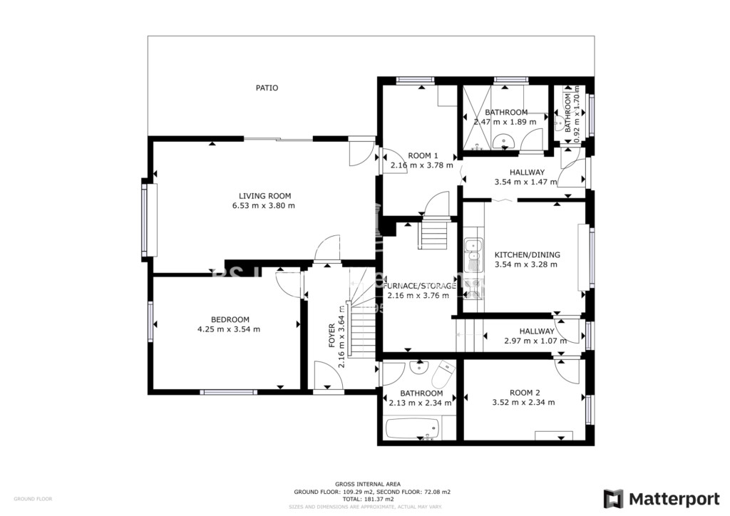 EG: Flur/Diele, offener Wohn-/Essbereich, Küche, WC, Bad, Heizungsraum, Garage, Werkstatt