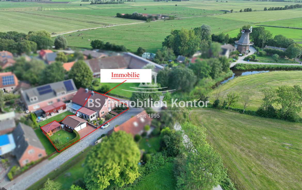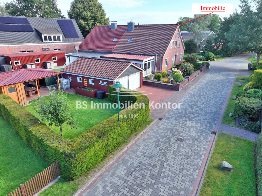 Im romantischen, idyllischen Uttum präsentieren wir Ihnen dieses besondere Immobilienangebot. Die Immobilie wurde 1968 in konventioneller Massivbauweise mit einem Satteldach erstellt. Ein besonderes Highlight ist der großzügig angelegte Wintergarten. Das Grundstück bemisst ca. 442qm und wurde mit viel Liebe zum Detail angelegt. Aufgrund der praktischen Raumanordnung ist das „ebenerdige Wohnen“ hier möglich. Das Objekt bietet Ihnen mit einer Wohnfläche von über 166qm ausreichend Platz und Entfaltungsmöglichkeiten. Das Oberschoss verfügt über drei Zimmer mit und einem Duschbad. An kalten Wintertagen spendet der Pelletofen in der Küche zusätzliche Wärme. Beheizt wird das Objekt durch eine Gas-Z.-Heizung (EWE-Leasing Therme). Gerne überzeugen wir Sie in einem persönlichen Besichtigungstermin vom Charme dieser Immobilie.