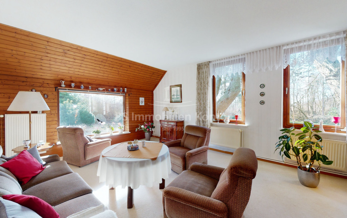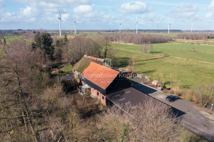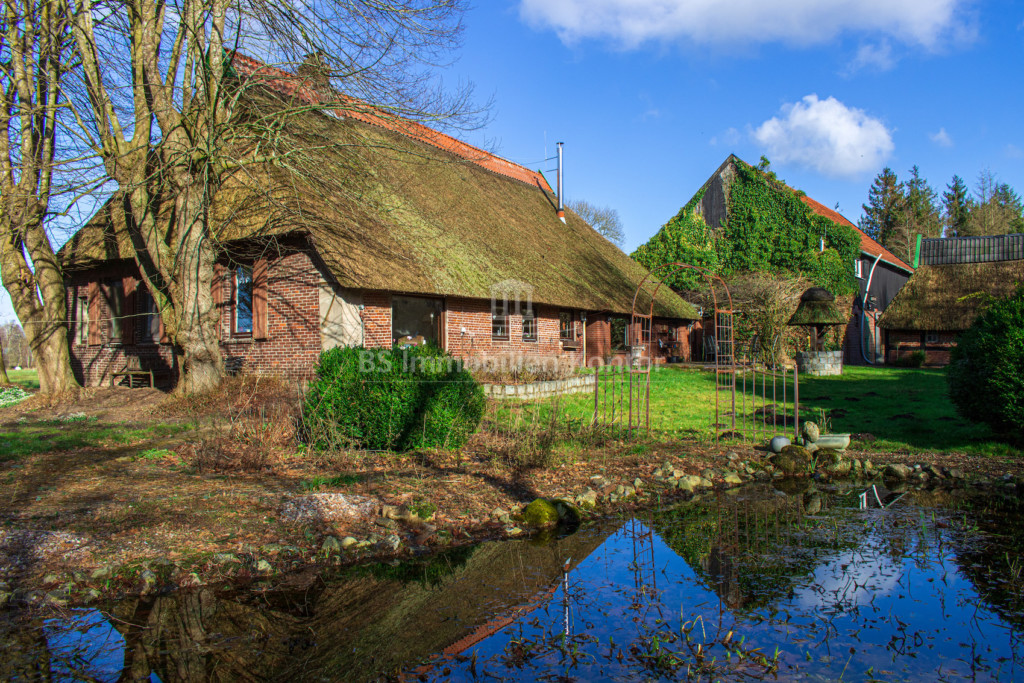 Entlang einer ca. 200m langen, privaten Zuwegung, präsentiert sich dieses reetgedeckte Anwesen auf einem Grundstück von ca. 65.768qm. Nahezu ringsherum von einem freien Blick und einen alten Baumbestand umgeben, bietet diese einmalige Gelegenheit pure Freiheit und Privatsphäre. Unterschiedliche Nutzungsmöglichkeiten für vielerlei Zwecke bietet das großzügige Nebengebäude welches derzeit für Lagermöglichkeiten, Stallungen und Hobbyräume genutzt wird. Das Wohngebäude des Anwesens erstreckt sich aus zwei miteinander verbundene Wohneinheiten, welche sich aber aufgrund der verschiedenen Eingänge auch getrennt nutzen lassen. Der vordere Teil des Wohnhauses umfasst einen Flur, Wohnküche, gr. Wohnzimmer, 2 x Schlafzimmer, Bad, Garderobe und im Obergeschoss einen weiteren Flur nebst Schlafzimmer/Büro. Im hinteren Teil existiert ein Wohnzimmer, Flur, Wohnküche, Schlafzimmer, Esszimmer und ein Badezimmer. Im Inneren herrscht eine helle und freundliche Wohlfühlatmosphäre. Beheizt wird das Objekt durch eine Öl-Heizung. Der dänische Kamin im Wohnzimmer beschert Ihnen zusätzlich eine angenehme Wärme. Eine Immobilie für Liebhaber alter Gemäuer, die eine idyllische Lage bevorzugen und die dieses einmalige Angebot zu schätzen wissen.
