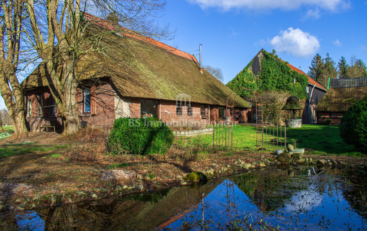 Viels. verwendbares, reetgedeckte Anwesen mit Nebengeb. auf ca. 65.768qm