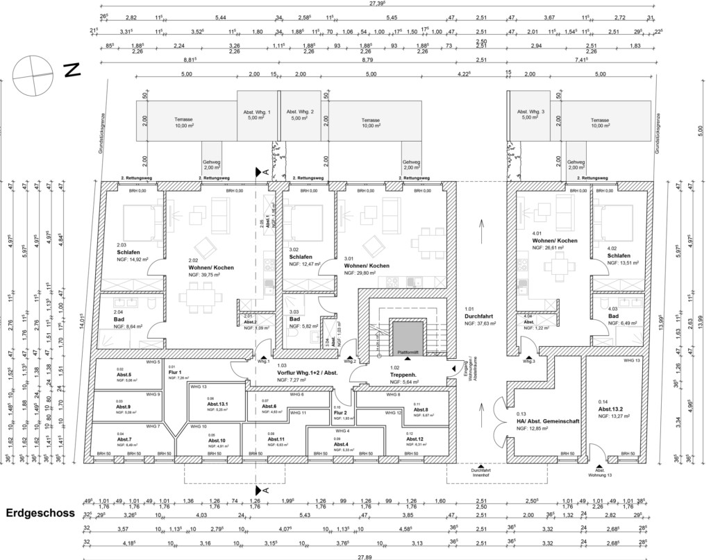 Gesamt: Wohn-/Nutzfläche 68,07qm zzgl. Abstellraum im EG ca. 5qm