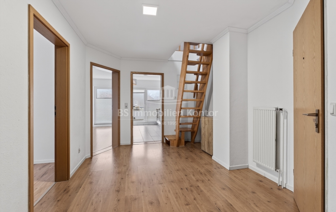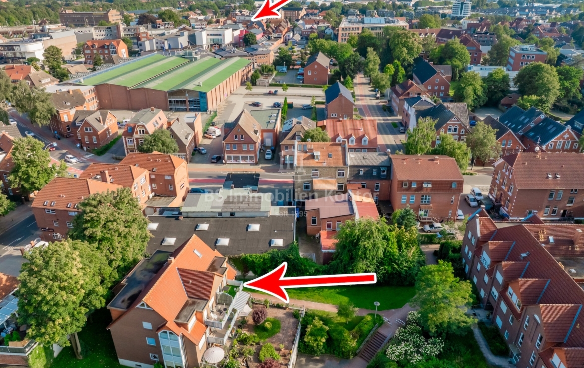 In einer ruhigen und dennoch zentralen Wohnlage von Leer befindet sich diese gepflegte Eigentumswohnung, die durch ihre durchdachte Raumaufteilung und den angenehmen Wohnkomfort überzeugt. Die Wohnung verfügt über einen einladenden Flur, eine separate Küche mit direktem Zugang zum Balkon sowie ein helles Wohnzimmer, das ebenfalls einen Zugang zum Balkon bietet und so den Wohnbereich mit dem Außenbereich harmonisch verbindet. Weiterhin befinden sich auf dieser Ebene zwei Schlafzimmer und ein Duschbad. Das Dachgeschoss (Dachboden) bietet weitere Nutzfläche und rundet das Raumangebot sinnvoll ab. Beheizt wird das Objekt über eine neuwertige Gas-Zentralheizung (BJ: 2025). Für Ihren Pkw steht ein eigener Tiefgaragenstellplatz zur Verfügung, der komfortables und sicheres Parken gewährleistet. Die Lage der Wohnung zeichnet sich durch eine hervorragende Infrastruktur aus: In unmittelbarer Nähe befinden sich Apotheken, Banken, Arztpraxen, Bäckereien und diverse Einkaufsmöglichkeiten für den täglichen Bedarf – vieles davon ist fußläufig erreichbar. Diese Wohnung ist ideal für Menschen, die eine ruhige und zentrale Lage schätzen und gleichzeitig Wert auf eine gute Raumaufteilung und praktischen Wohnkomfort legen.