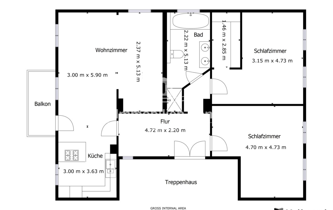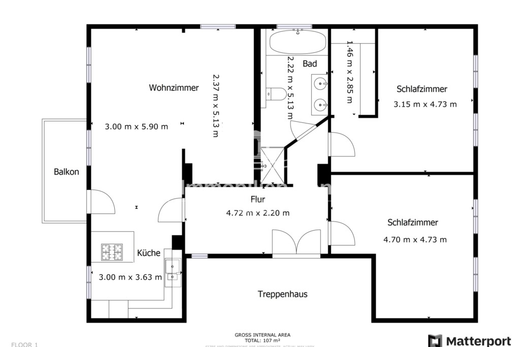 Gesamt: Wohn-/Nutzfläche ca. 102qm
