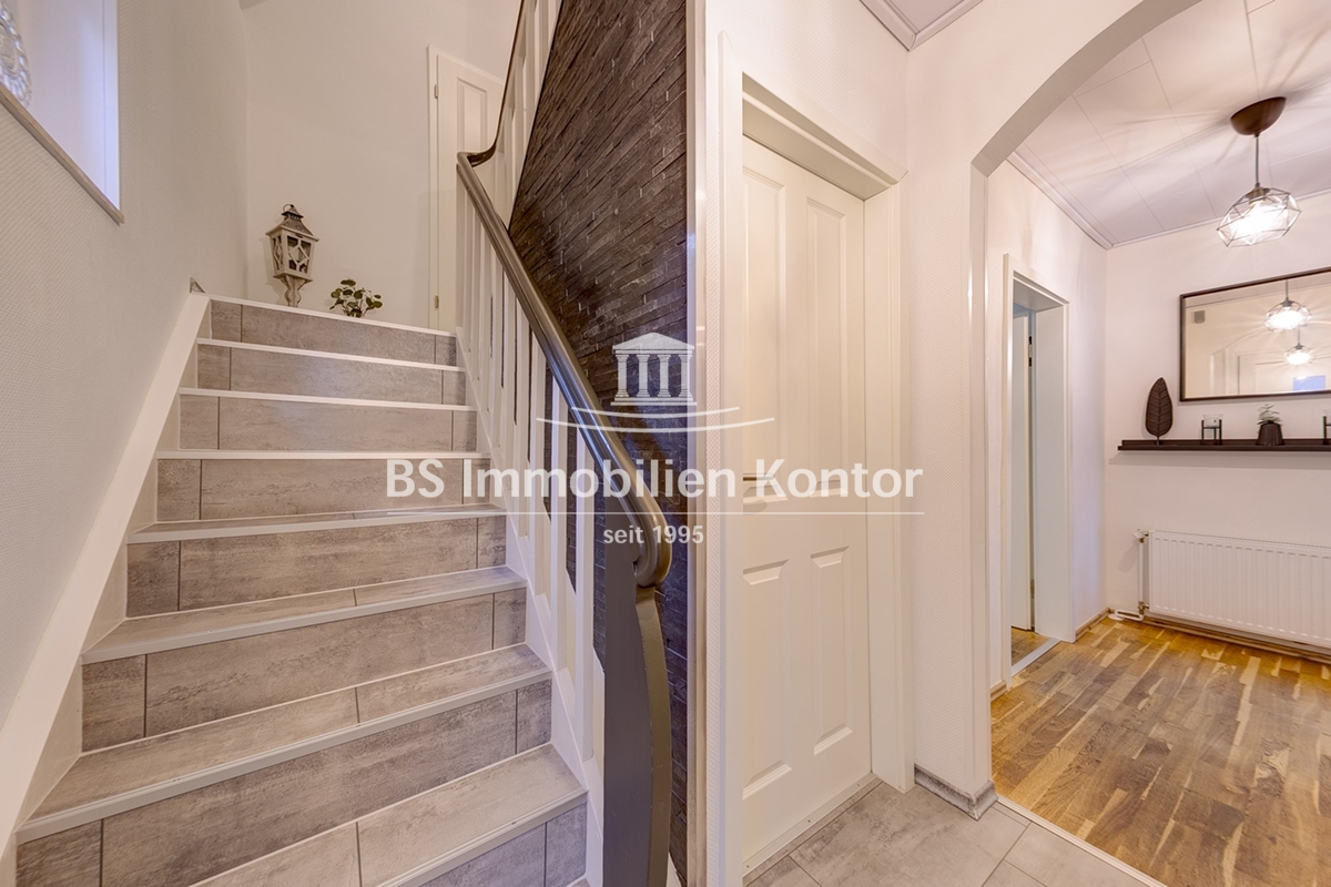 Wohnhighlight in Wolthusen! Einziehen und Wohlfühlen. Dieses Immobilienangebot wird Sie begeistern. In bevorzugter Wohnlage von Emden präsentiert sich diese sanierte Traumimmobilie im top gepflegten Zustand. Das Einfamilienhaus wurde 1959 in konventioneller Massivbauweise mit einem Satteldach erstellt. Von 2018-2020 erfolgten umfangreiche Sanierungsmaßnahmen (vgl. Aufstellung). Vom einladenden Eingangsbereich eröffnet sich Ihnen der großzügige, offen gestaltete und lichtdurchflutete Wohn- und Essbereich. Die großzügigen Fensterelemente sorgen für ein großartiges Raumgefühl & Wohnklima. Genießen Sie lange, ausgedehnte Sommerabende auf der überdachten Terrasse. Mit einer Wohnfläche von über 139qm bietet Ihnen diese Immobilie ausreichend Platz und Entfaltungsmöglichkeiten für dir ganze Familie. Die hochwertige Einbauküche mit Markengeräten lädt Sie zu ausgedehnten Kochabende ein. Über eine formschöne, helle Holztreppe gelangen Sie ins Obergeschoss. Das Eigentumsgrundstück bemisst ca. 464qm und ist pflegeleicht angelegt. Die weißen Kunststofffenster sind mit einer Isolierverglasung ausgestattet Beheizt wird die Immobilie mit einer Gas-Z.-Heizung. Eine Immobilie für Menschen die Wohnqualität mit Lebensqualität verbinden und Wolthusen als Wohnviertel zu schätzen wissen.