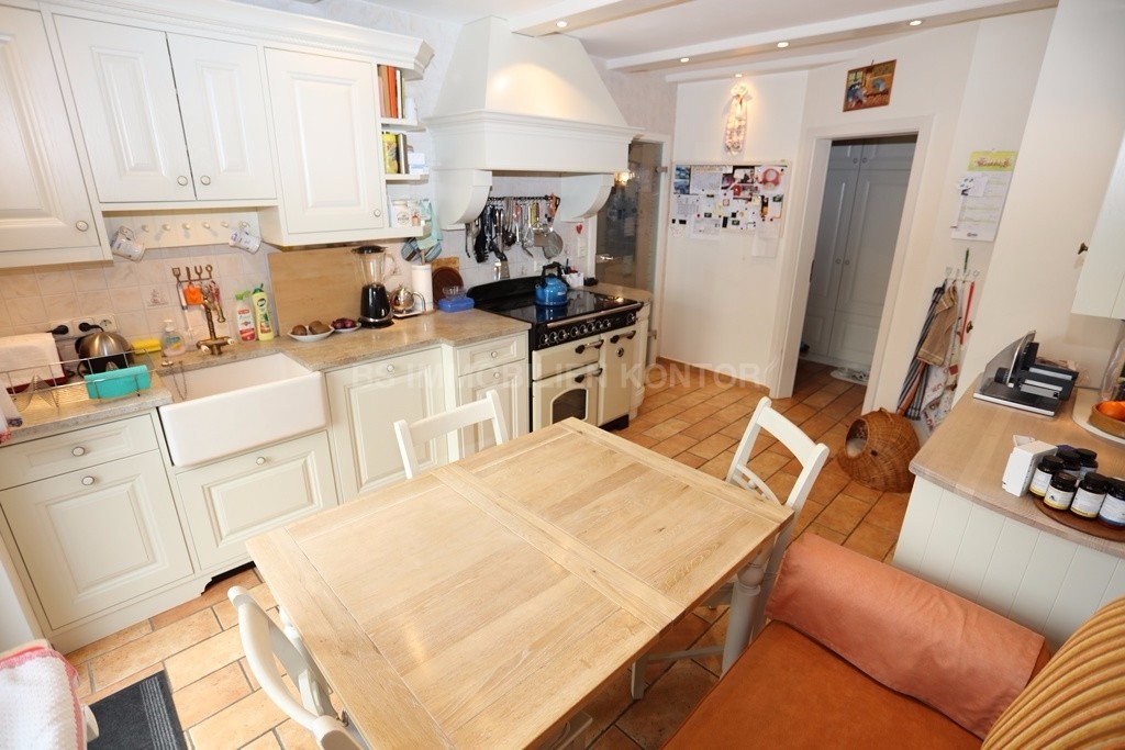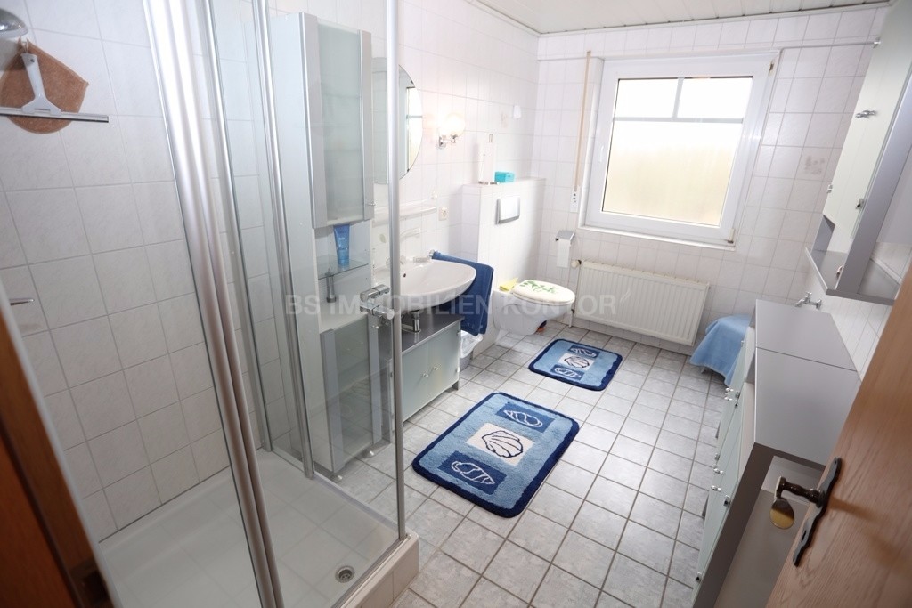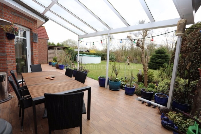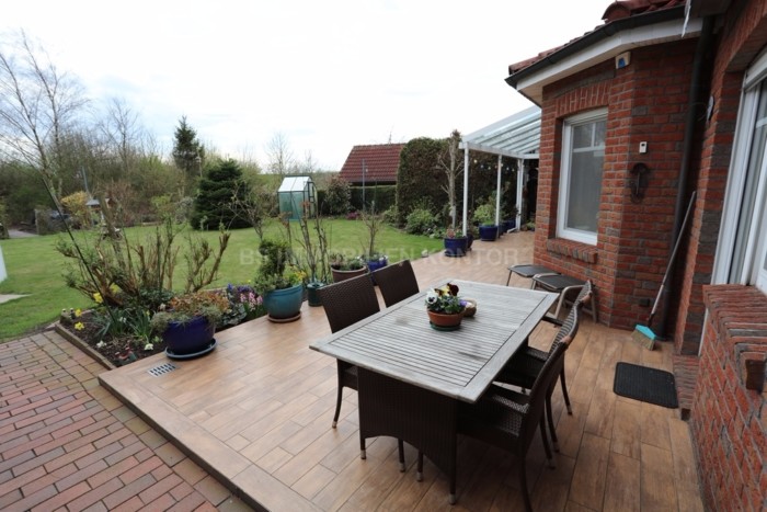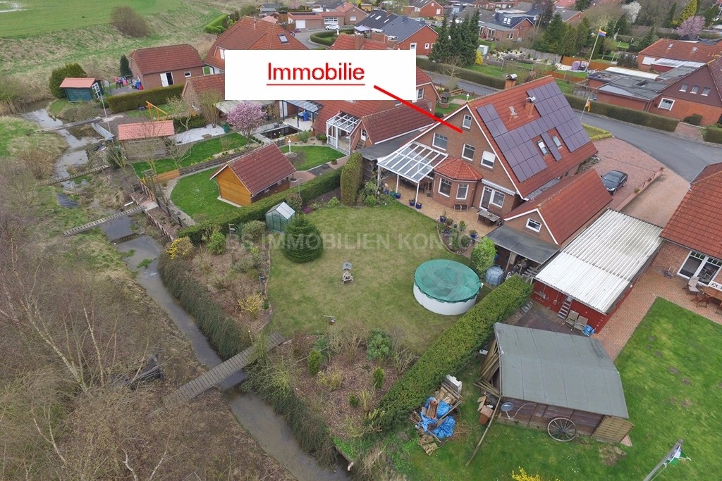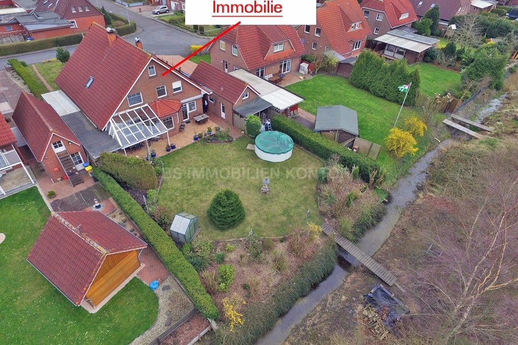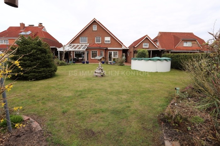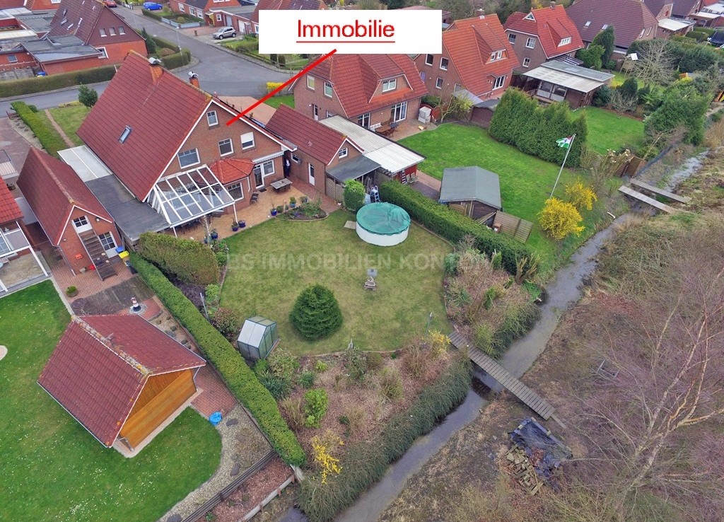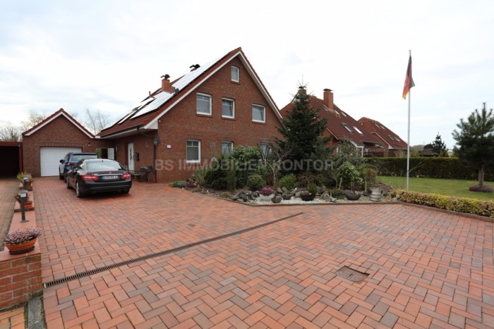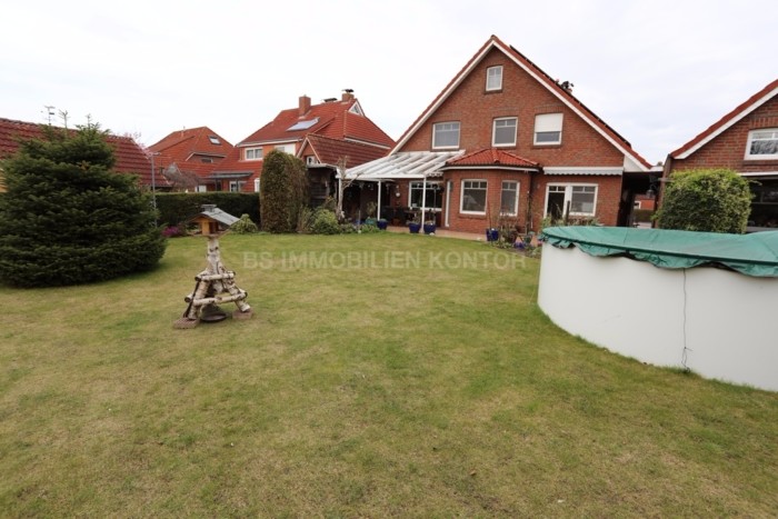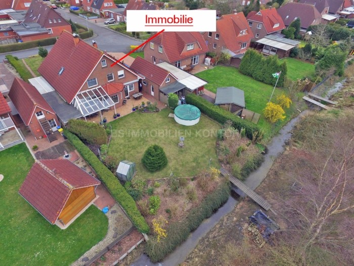 Dieses top gepflegte geräumige Einfamilienhaus wurde 1995 in Massivbauweise mit einem Satteldach erstellt und liegt in einer zentrumsnahen, idyllischen Wohnlage von Emden. Das Grundstück (Süd-West Ausrichtung) bemisst ca. 975 qm und bietet im rückwärtigen Bereich einen freien Blick in die Natur. Die ca. 35 qm große Terrasse ist teilweise überdacht und lädt Entspannen & Relaxen ein. Im Obergeschoss befindet sich derzeit eine sep. Einliegerwohnung (Zusammenlegung ohne baulichen Aufwand möglich). Beheizt wird das Objekt mit zwei Gas-Zentral-Heizungen (BJ:2010). Die installierte PV-Anlage verfügt eine Nennleistung von ca. 3,96 kwp und kann gegen Aufpreis (15.000 EUR ; Ertrag ca. 170,00 EUR Brutto mtl.) erworben werden. Die Kunststofffenster sind isolierverglast und mit Jalousien ausgestattet. Für zusätzliche Wärme und Harmonie sorgt ein Kachelofen im Wohnbereich. Die Räumlichkeiten sind hell & freundlich und strahlen eine gemütliche Atmosphäre aus.